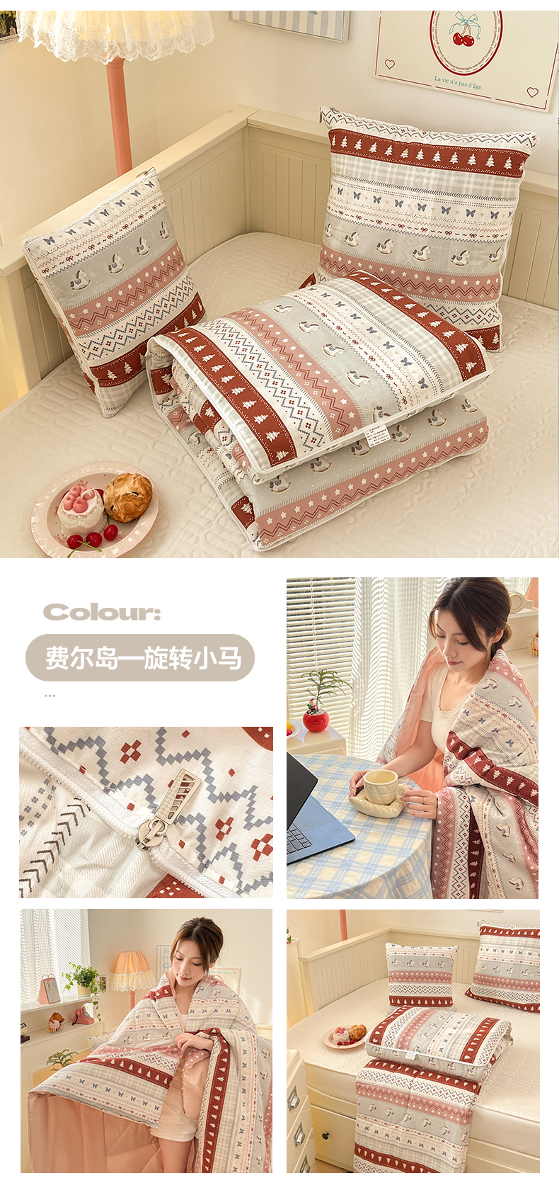(总)番茄+ 2026新款全棉纯棉13070小清新卡通全棉系列抱枕被,费尔岛-焦糖小熊,可爱糖果猫,面包狗,费尔岛-西高地,星星芝士,幸运小熊,费尔岛-旋转小马,组合图仅供展示不可下单