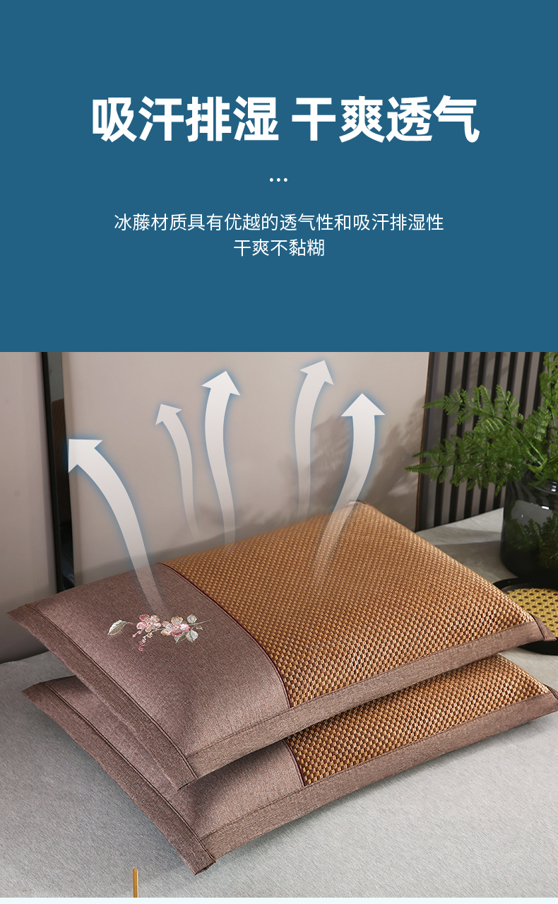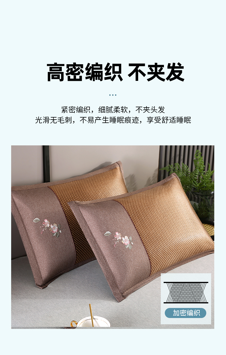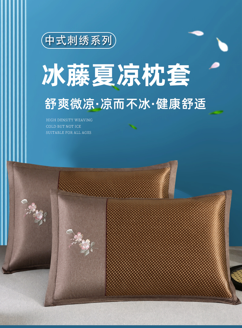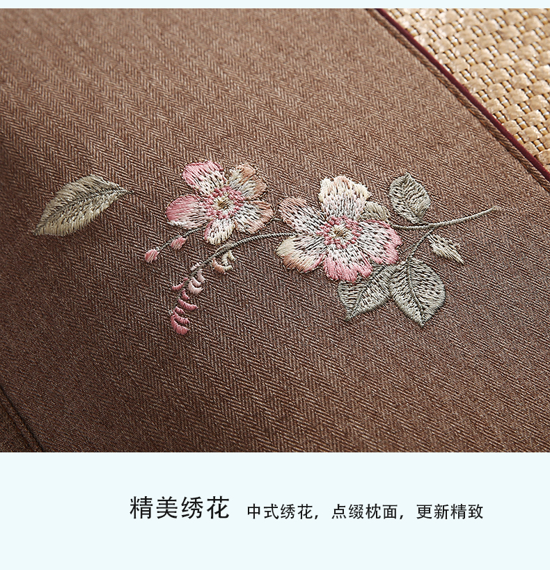 商品名称:小牛席业 2026新款冰藤夏凉枕套【中式刺绣】 大冰藤咖色