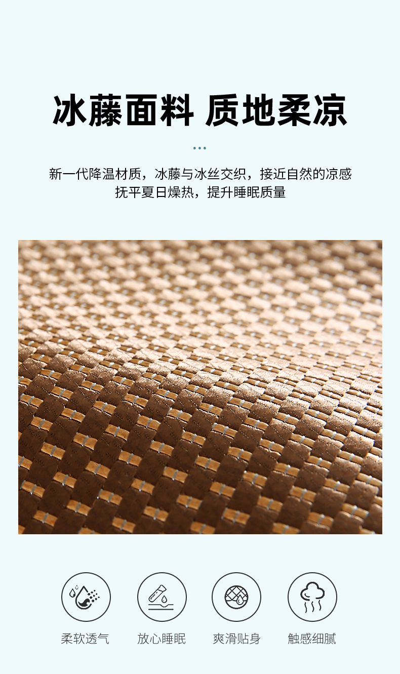 2023新款夏日冰点-冰藤双面席凉席藤席竹席冰丝席乳胶席,咖色,蓝色,绿色,香槟