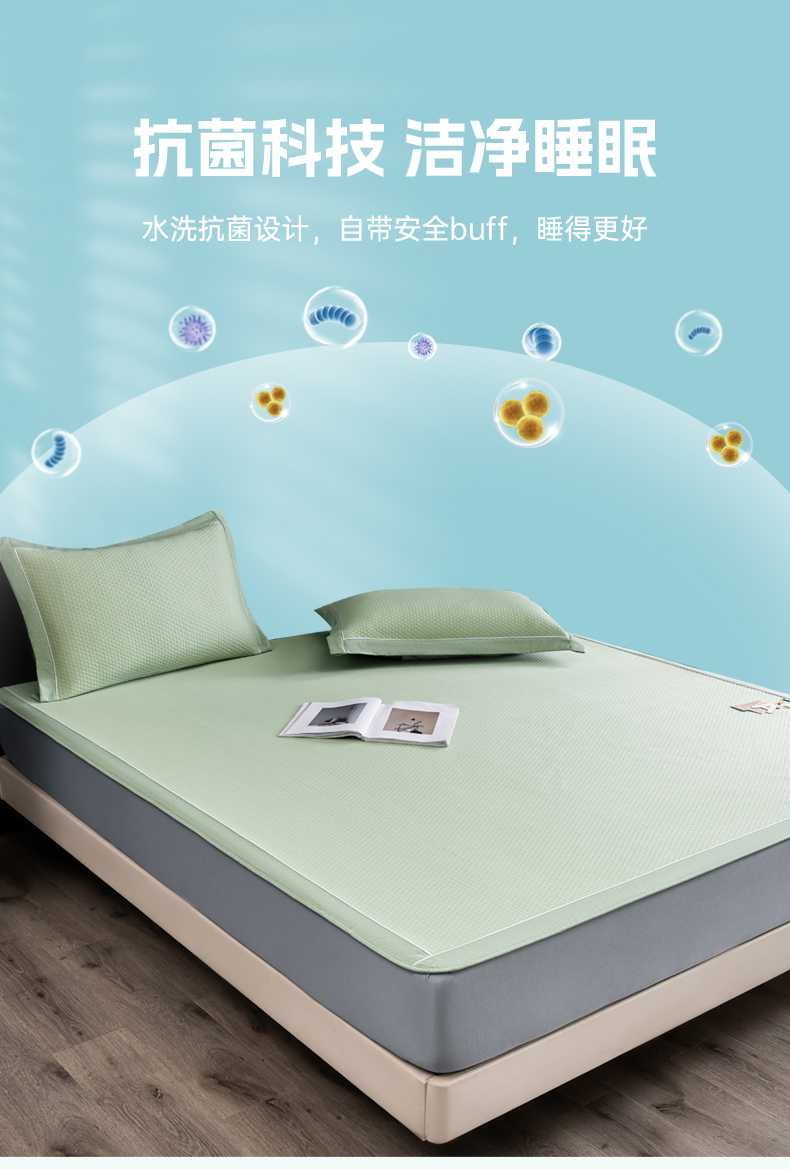 (总)2023新款超精密冰丝席-小斜纹系列-床笠款藤席凉席竹席,粉色,蓝色,绿色,银灰