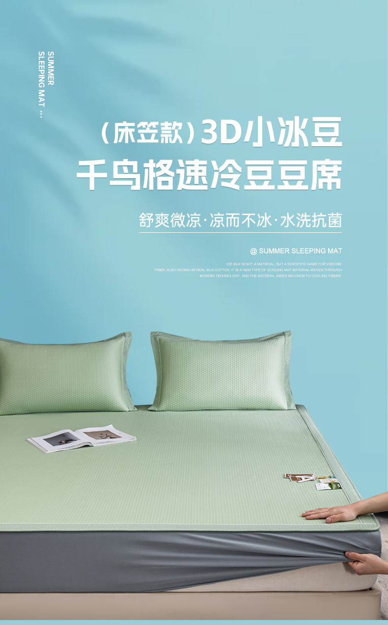 (总)小牛席业 2026新款小冰块大象凉感冰丝席凉席竹席藤席冰藤席乳胶席豆豆席,粉色,香槟,灰色,绿色,蓝色