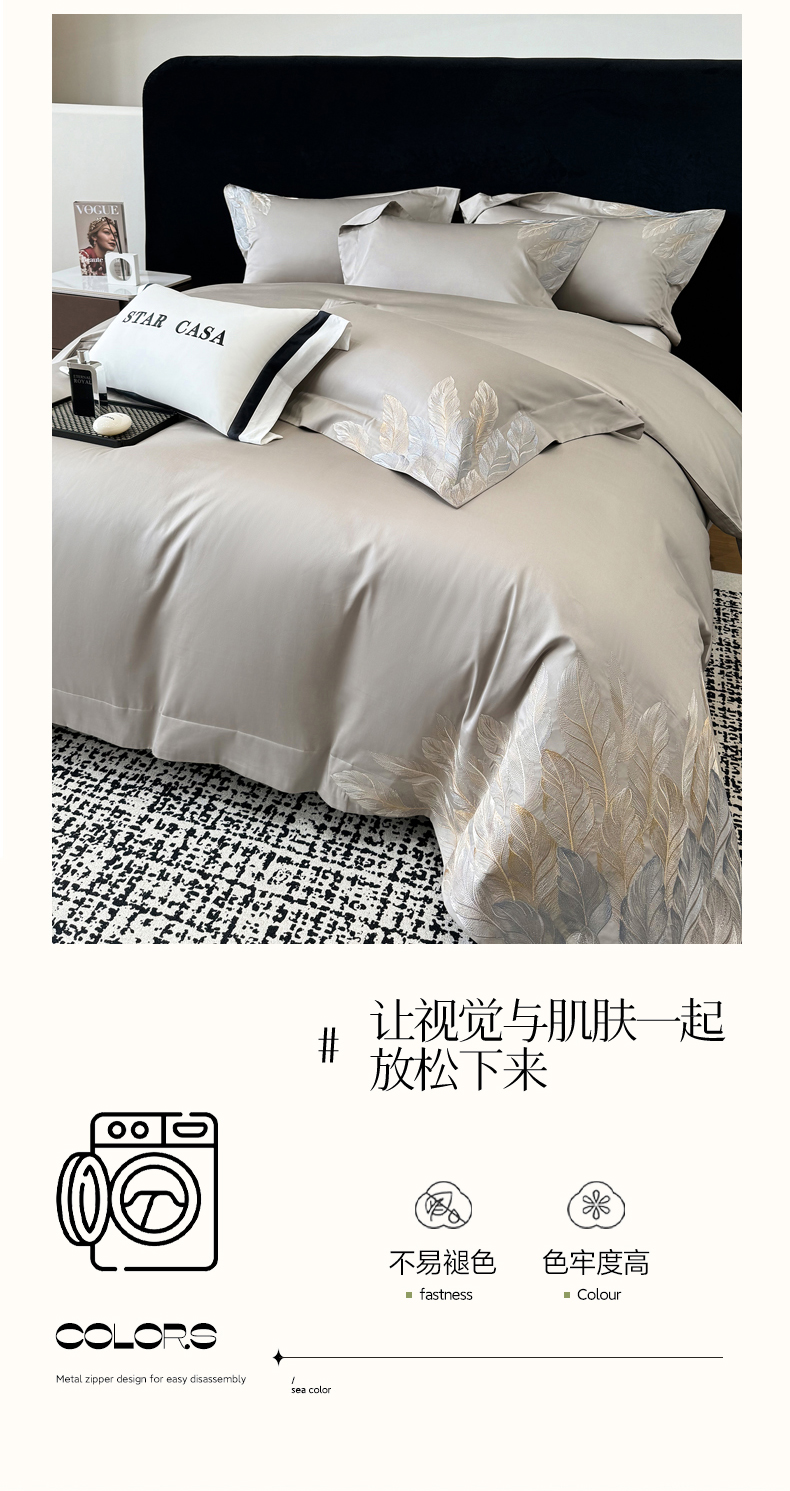 当前位置: 91家纺网 > 商品网购 > 床品套件 > 四件套 > 长绒棉四件套 > (总)2026新款长绒棉贡缎全棉纯棉刺绣四件套 栖悦