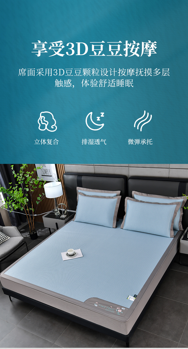 (总)小牛席业 2026新款小冰块大象凉感冰丝席凉席竹席藤席冰藤席乳胶席豆豆席,粉色,香槟,灰色,绿色,蓝色