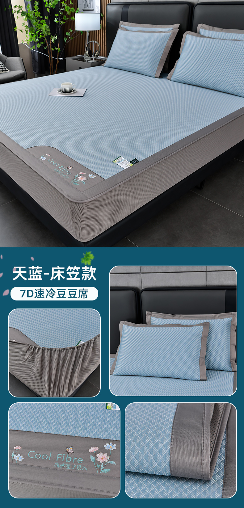 (总)小牛席业 2026春夏新款轻奢半定位凉感冰丝席凉席席子系列床笠款,轻奢半定位-粉色 床笠款,轻奢半定位-灰色 床笠款,轻奢半定位-蓝色 床笠款,轻奢半定位-抹茶 床笠款,轻奢半定位-香槟 床笠款