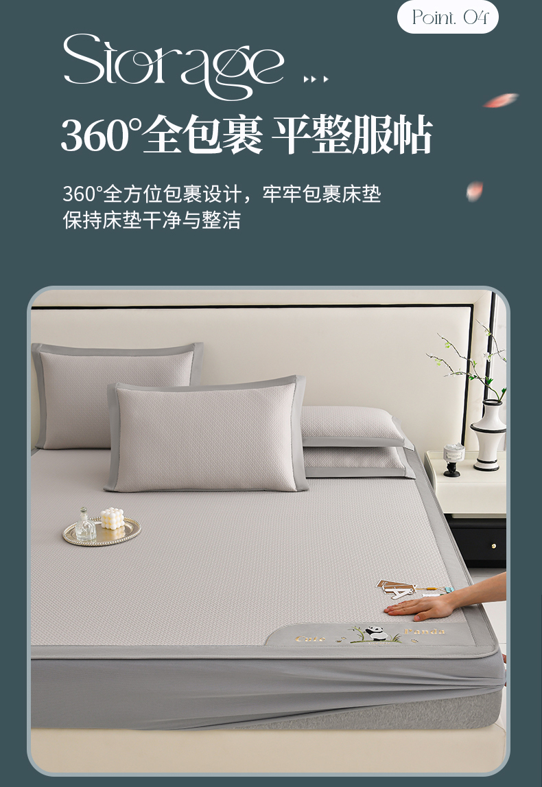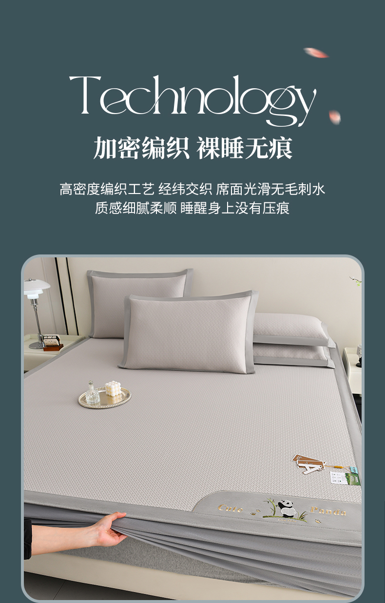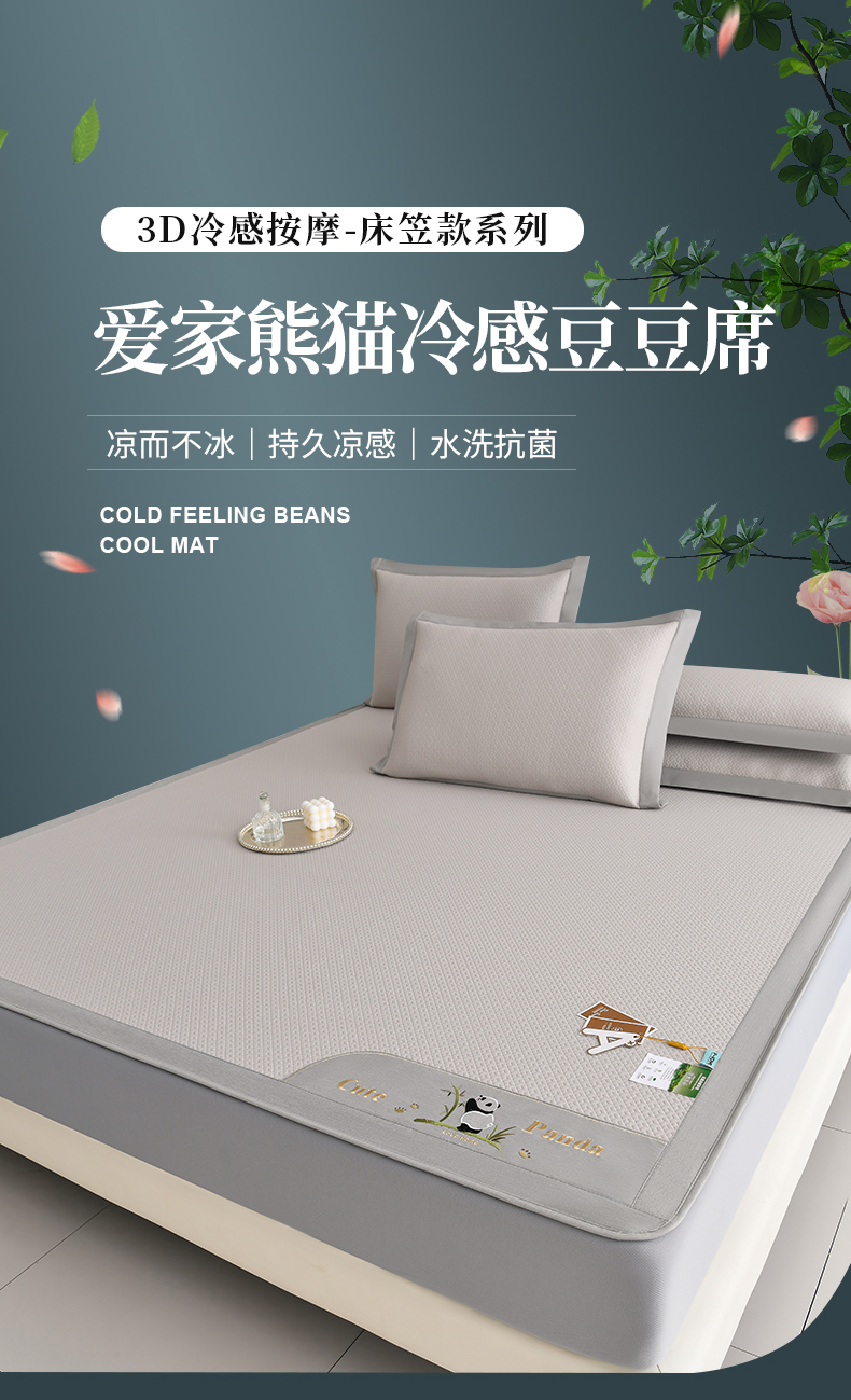 商品名称:小牛席业 2026新款爱家熊猫冷感豆豆席系列(床笠款) 米色