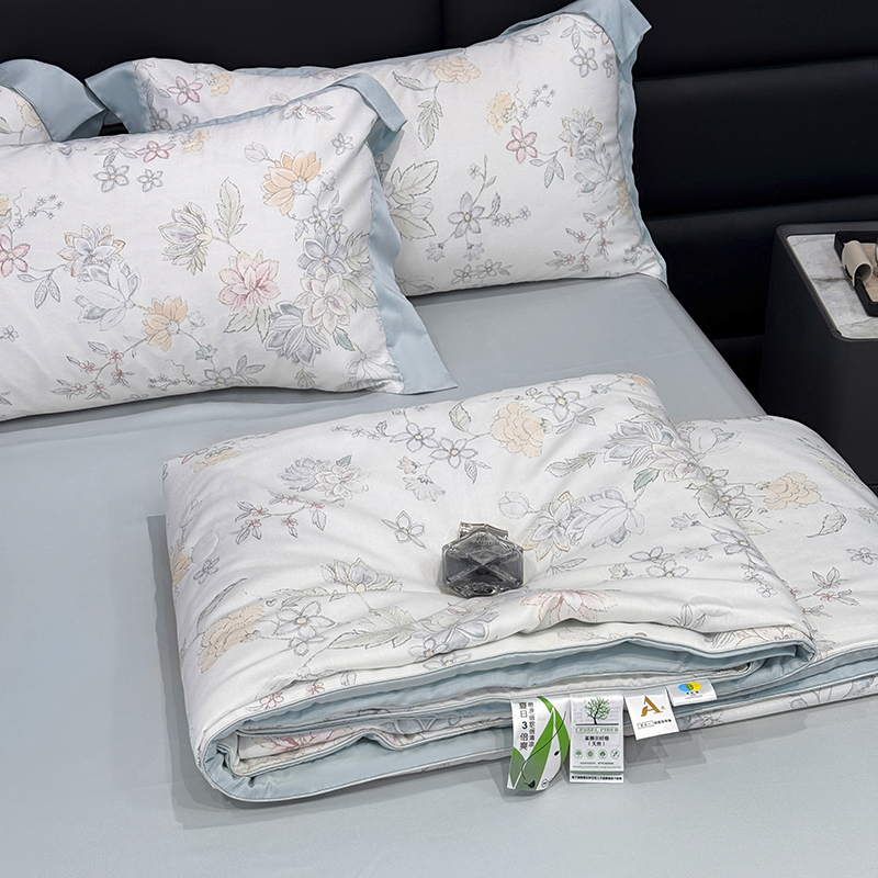 宜家坊 2026春夏新款莱赛尔天丝夏被嵌绳款数码印花单夏被 析漫枝