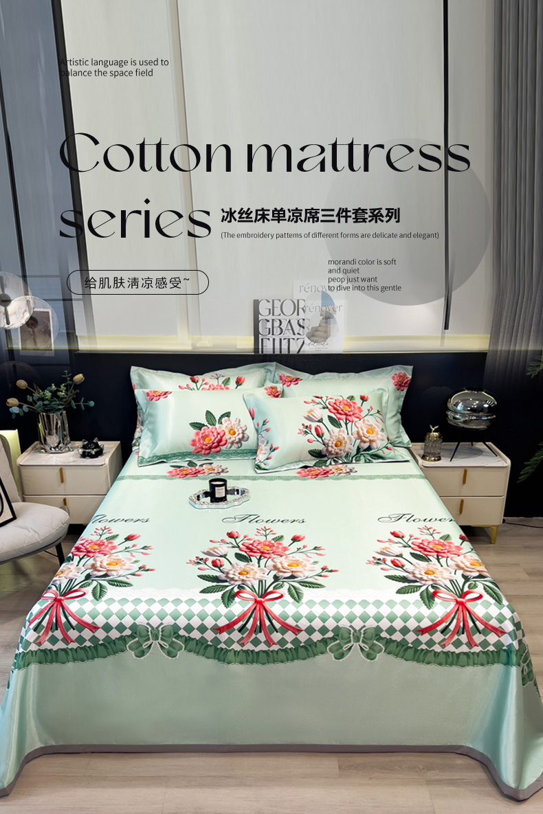 商品名称:许林 2026新款冰丝凉席床单款凉席三件套 晴溪