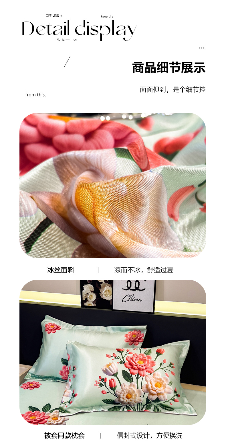 (总)许林家纺 2026爆款数码印花大版高克重冰丝凉席,夏木,花楹,绿野晴风,曼陀罗,牡丹,浅朵,四季花,星空幻想,孔雀