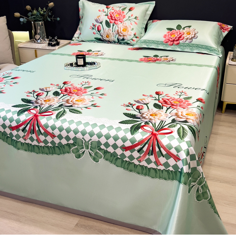 (总)许林家纺 2026新款花卉凉席床裙三件套-花语,花语-粉,花语-灰,花语-蓝,花语-绿