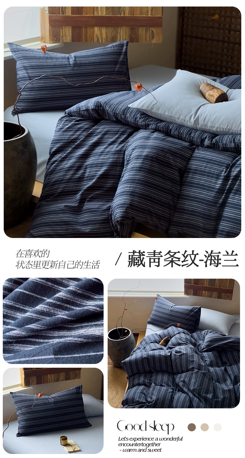 (总)对白 2026新款全棉纯棉色织水洗棉四件套-极简格子冰川孤岛系列,冰川小岛,海上孤岛