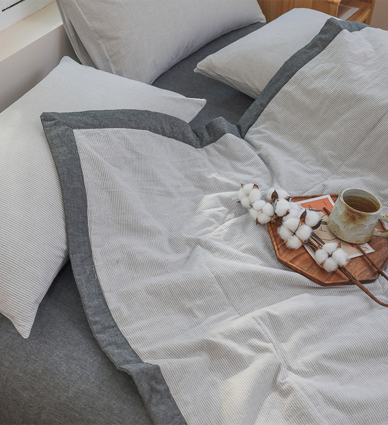 柠萌家居 2026新款全棉色织水洗棉棉花夏被四件套里外全棉空调被 夏凉被被子被芯 灰密条