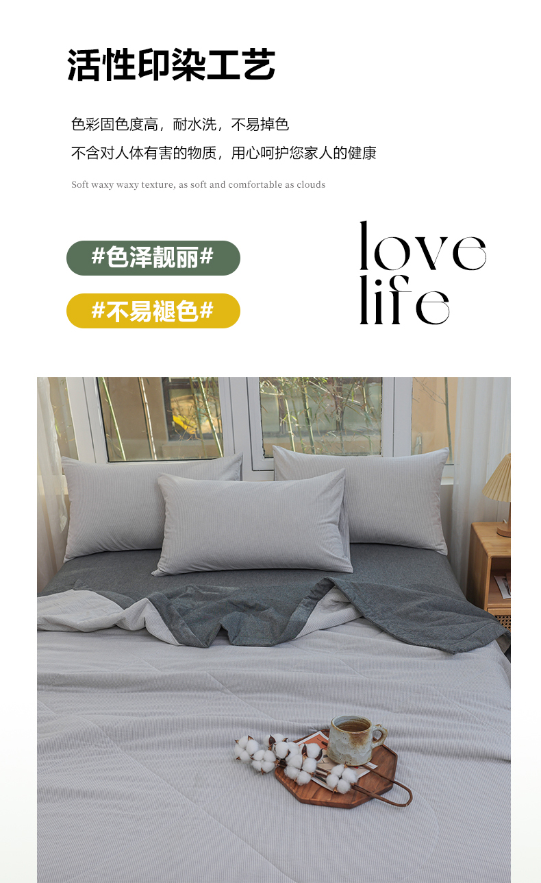 (总)柠萌家居 2026新款色织水洗棉四件套单被套,粉极细条,粉紫条,黄咖条,灰极细条,蓝咖条,绿极细条,绿紫条,米极细条,驼红条