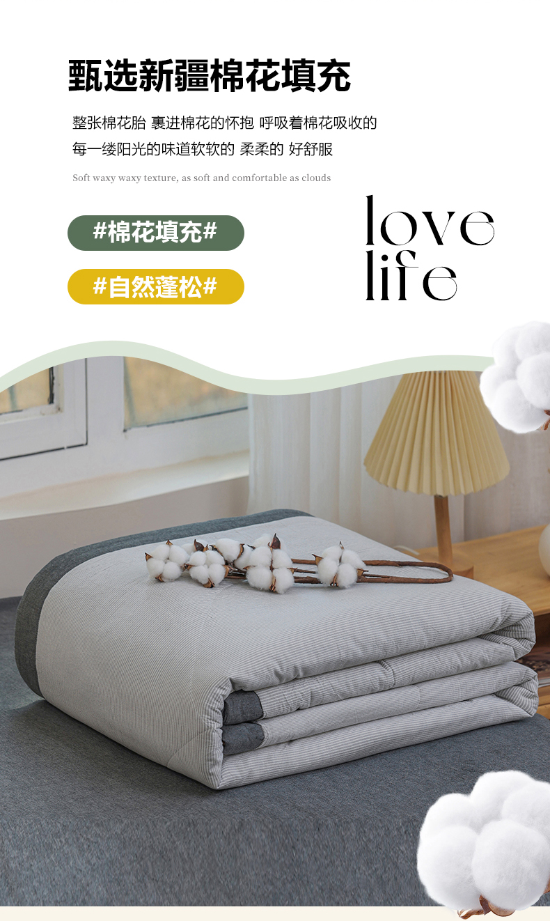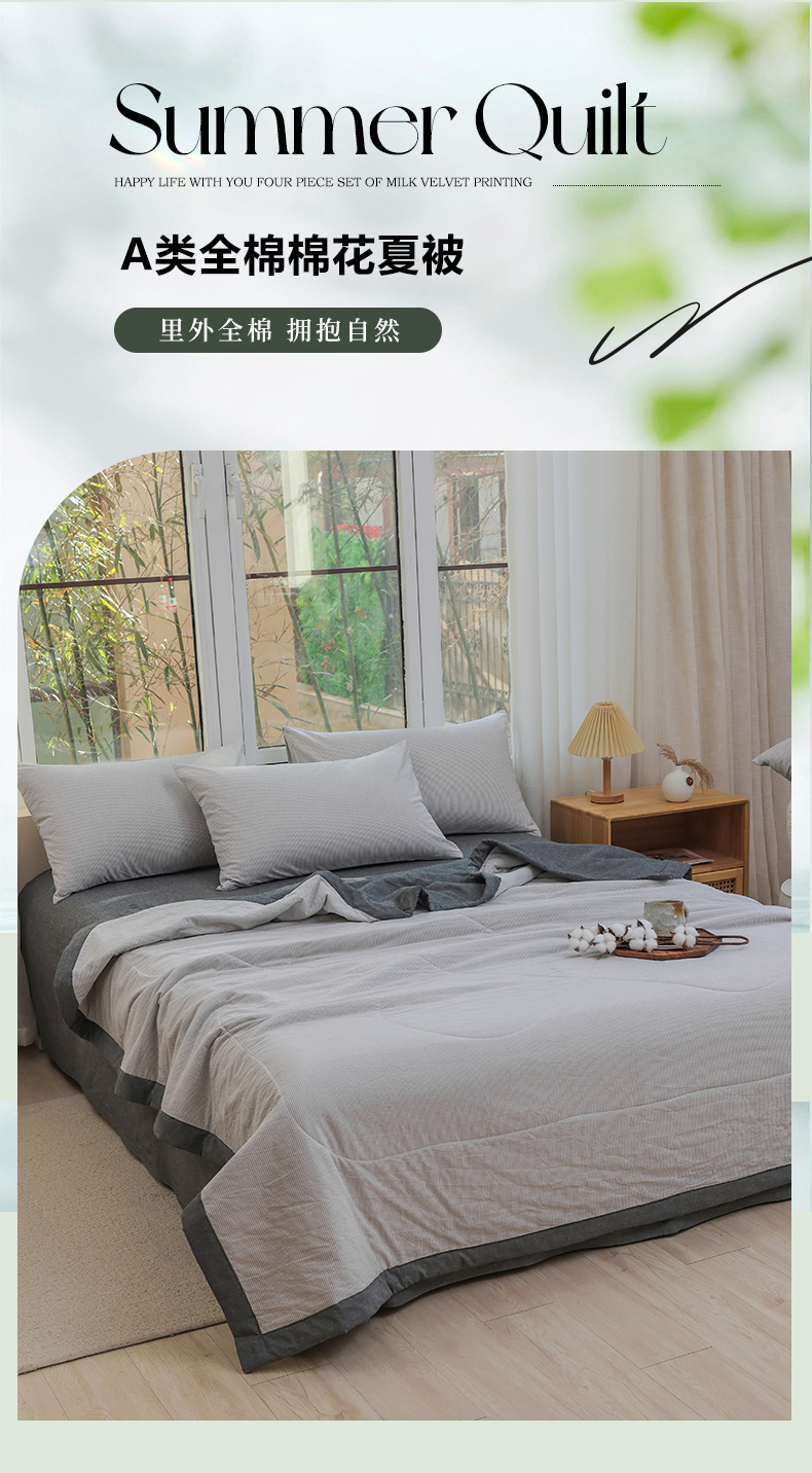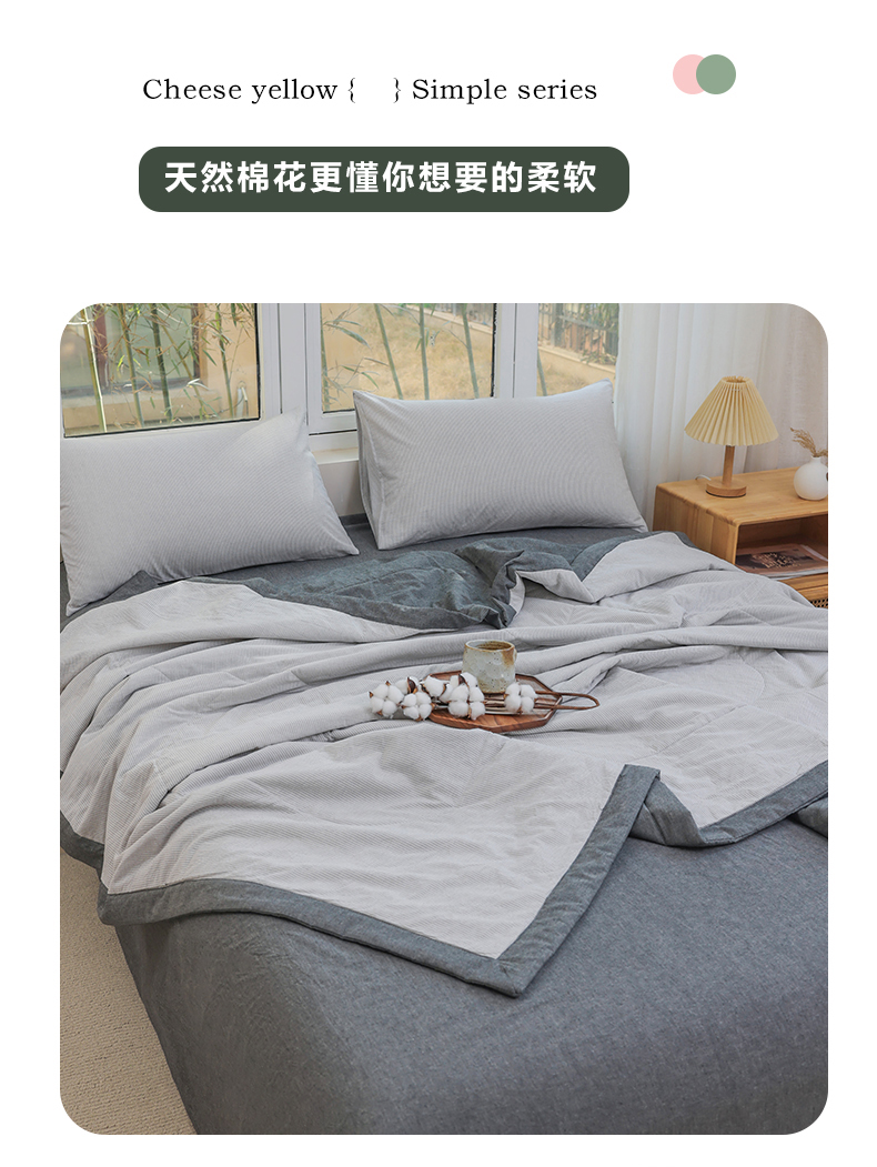 • 91家纺网 家纺一手货源 找家纺 柠萌家居 2026新款全棉色织水洗棉棉花夏被四件套里外全棉空调被 夏凉被被子被芯 灰密条