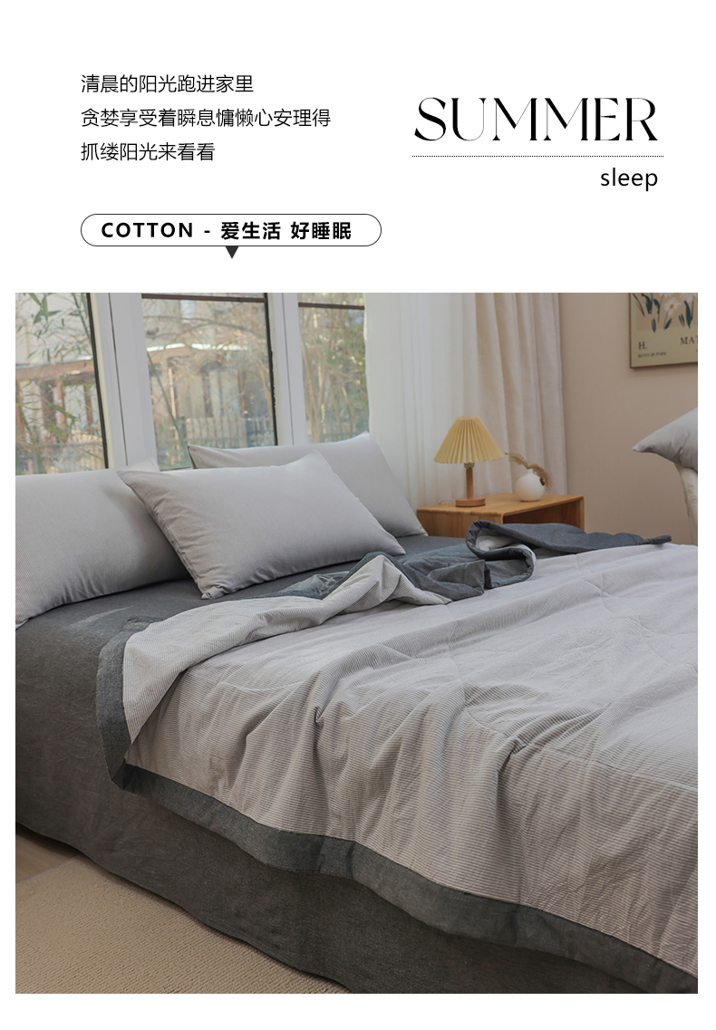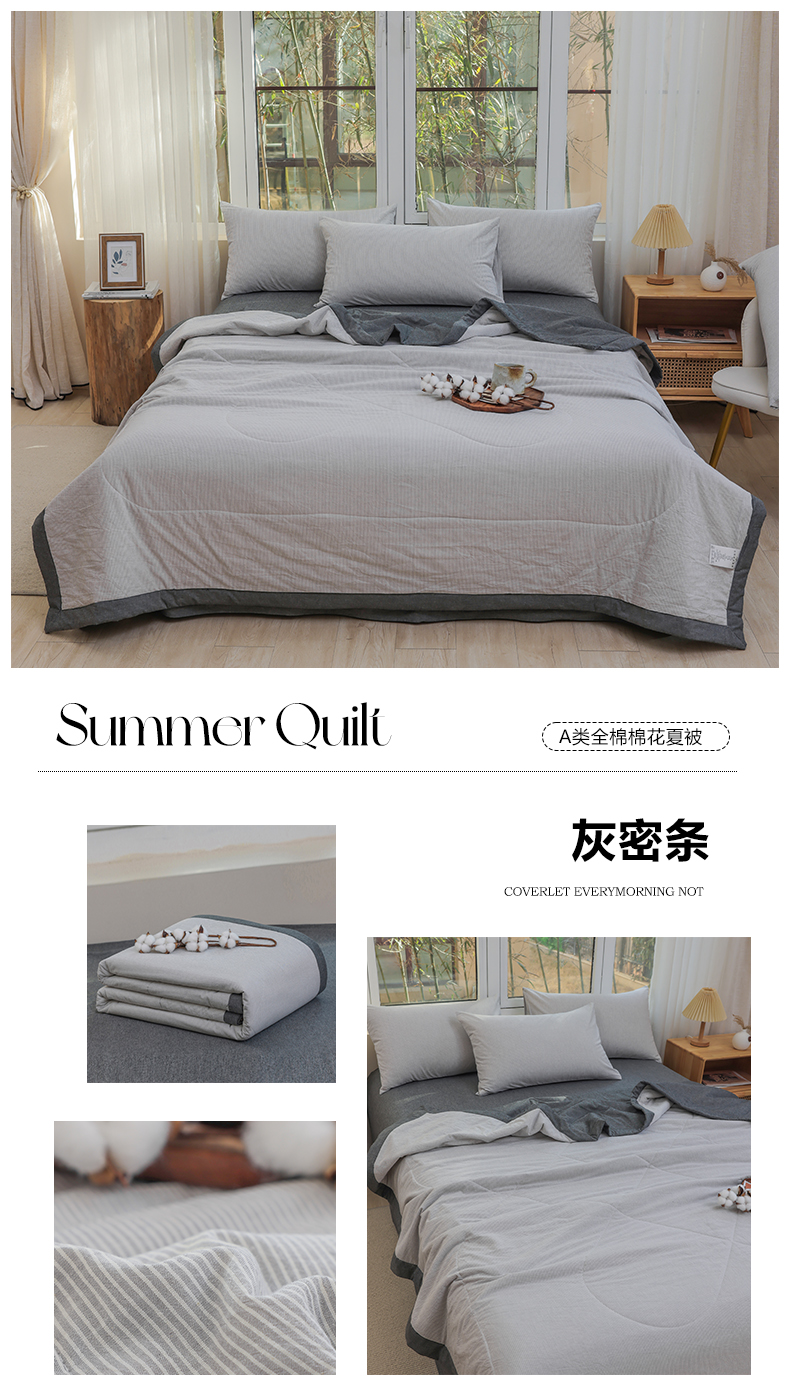 当前位置: 91家纺网 > 商品网购 > 被子 > 夏被 > 柠萌家居 2026新款全棉色织水洗棉棉花夏被四件套里外全棉空调被 夏凉被被子被芯 灰密条