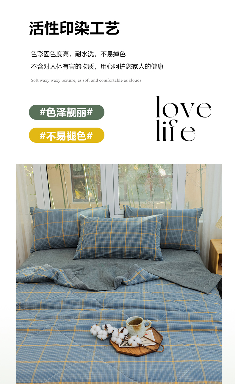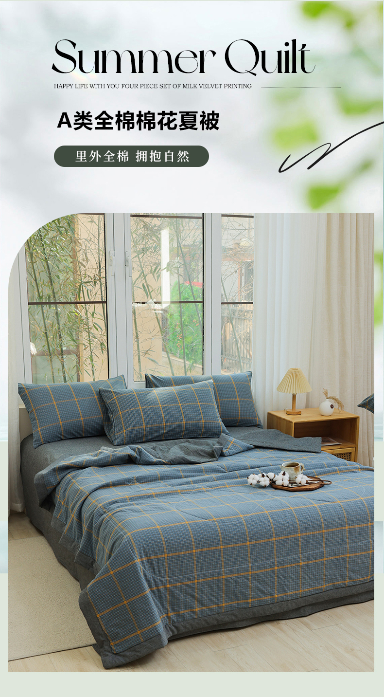 • 91家纺网 家纺一手货源 找家纺 柠萌家居 2026新款全棉色织水洗棉棉花夏被四件套里外全棉空调被 夏凉被被子被芯 瓦尔灰