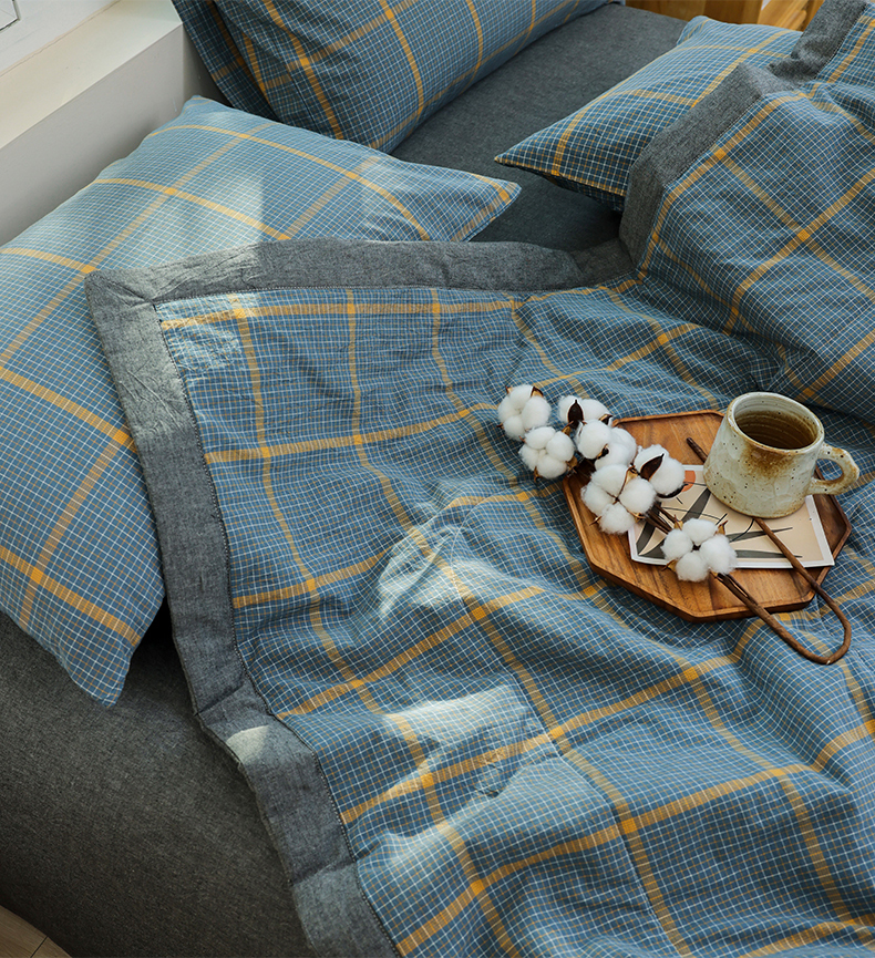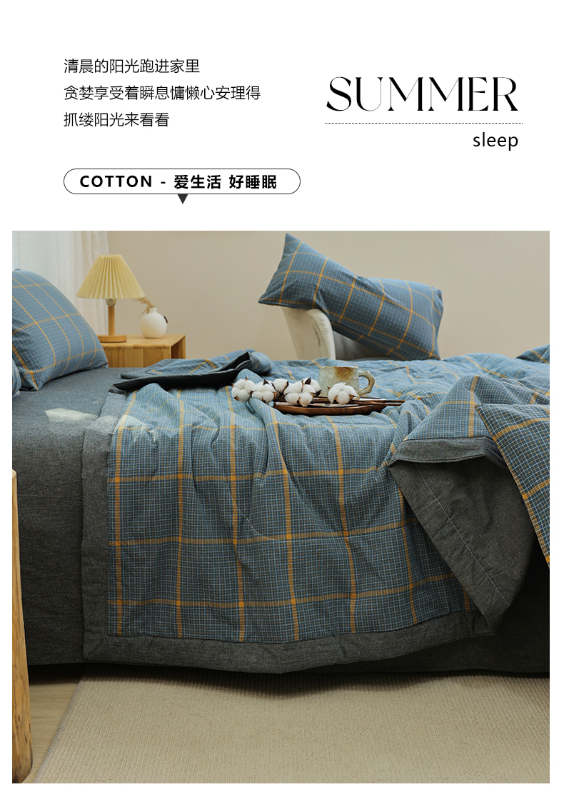 柠萌家居 2026新款全棉色织水洗棉棉花夏被四件套里外全棉空调被 夏凉被被子被芯 瓦尔灰