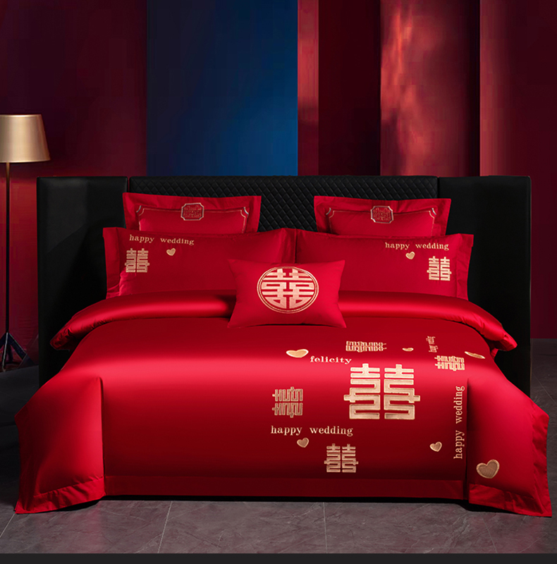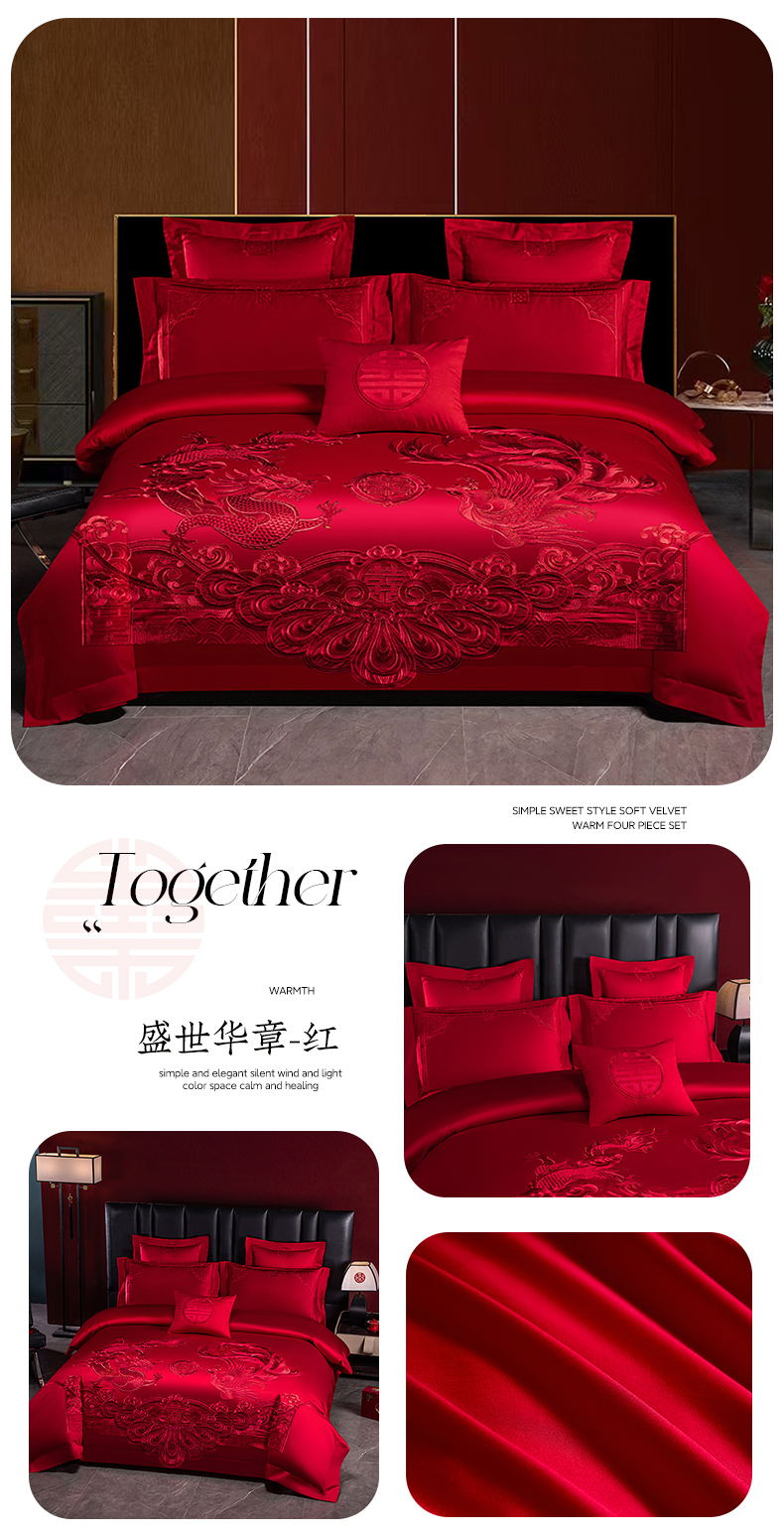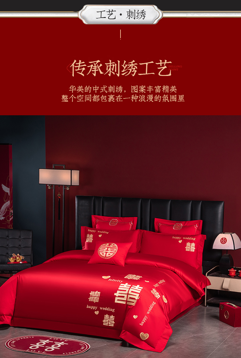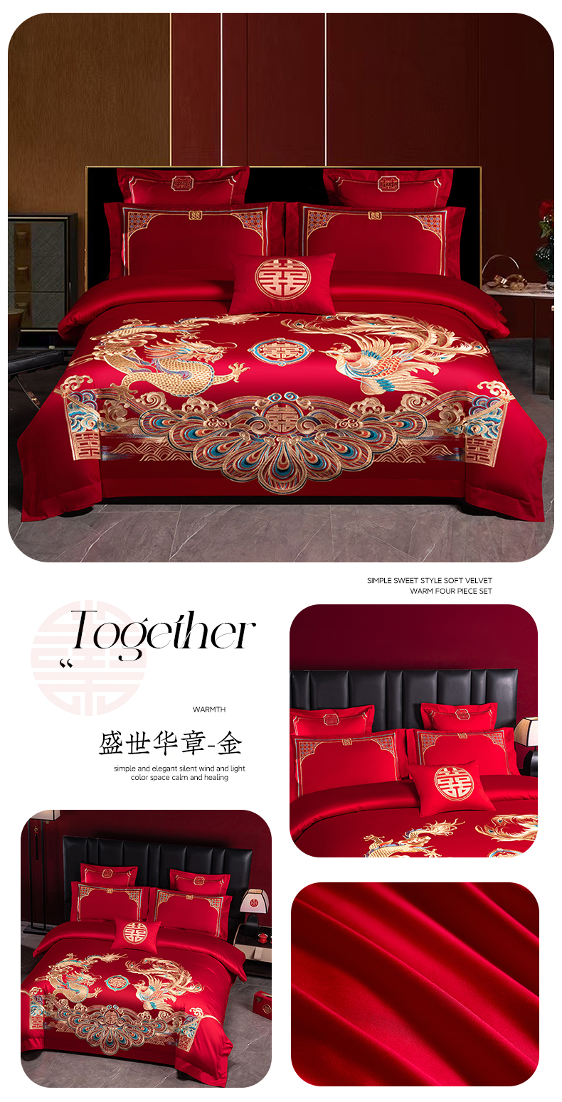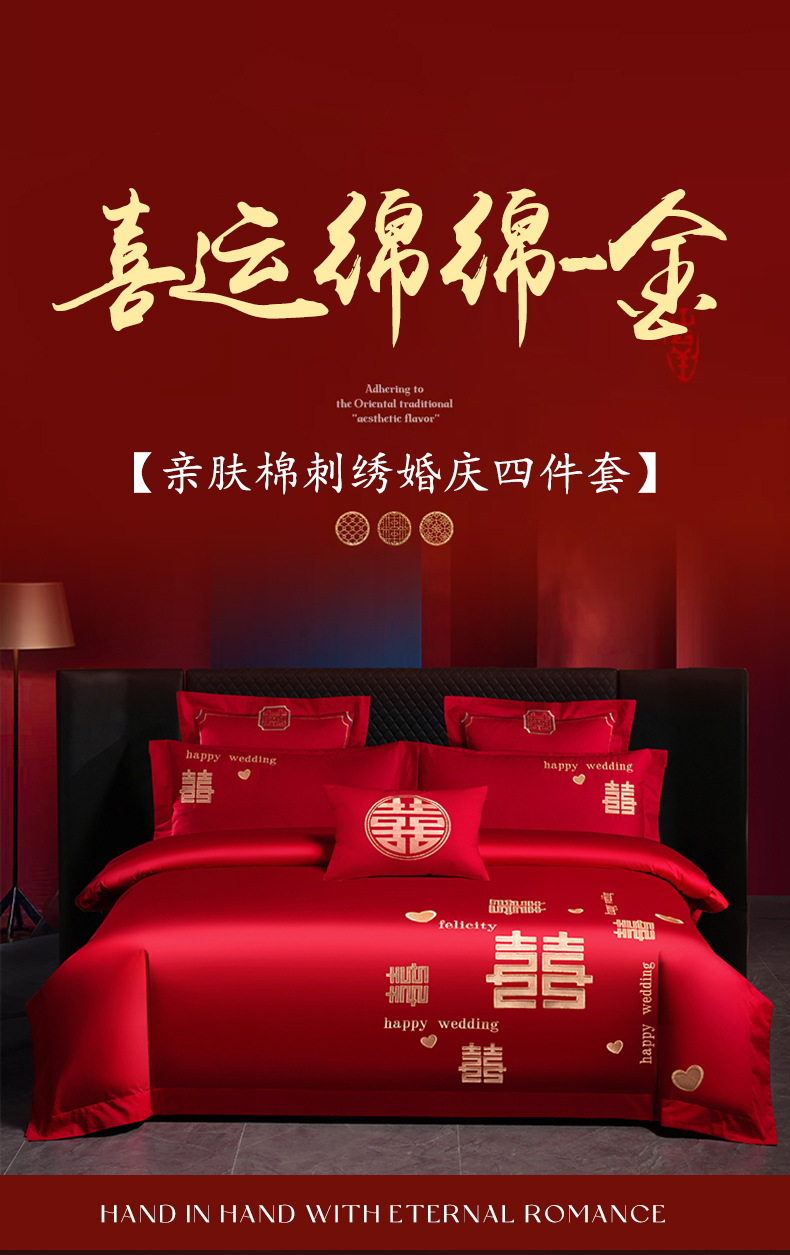 当前位置: 91家纺网 > 商品网购 > 床品套件 > 四件套 > 婚庆四件套 > 博之洋婚庆 2026新款新中式亲肤棉婚庆大红刺绣系列四件套 喜运绵绵-金