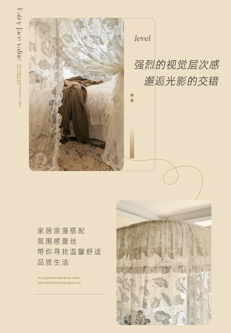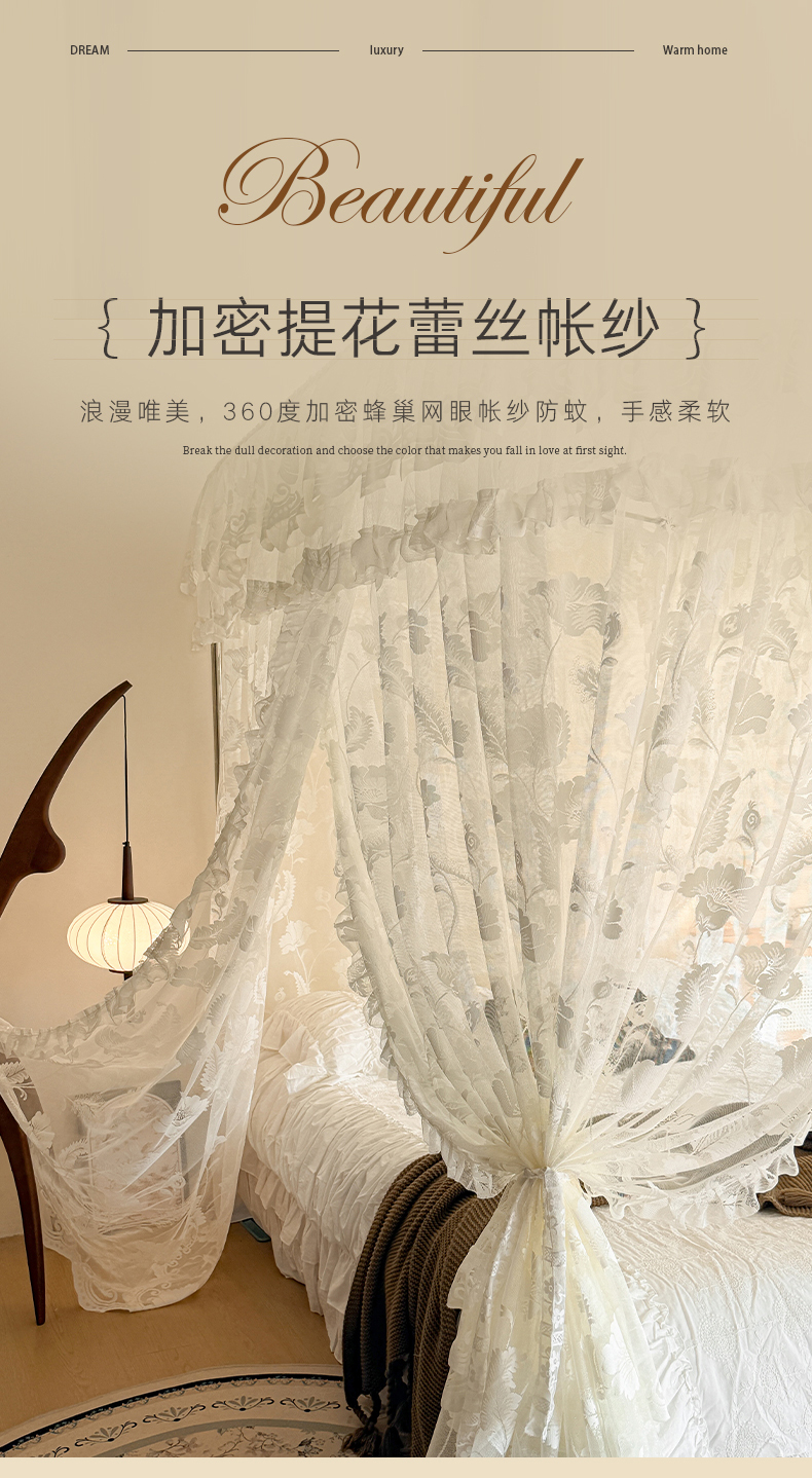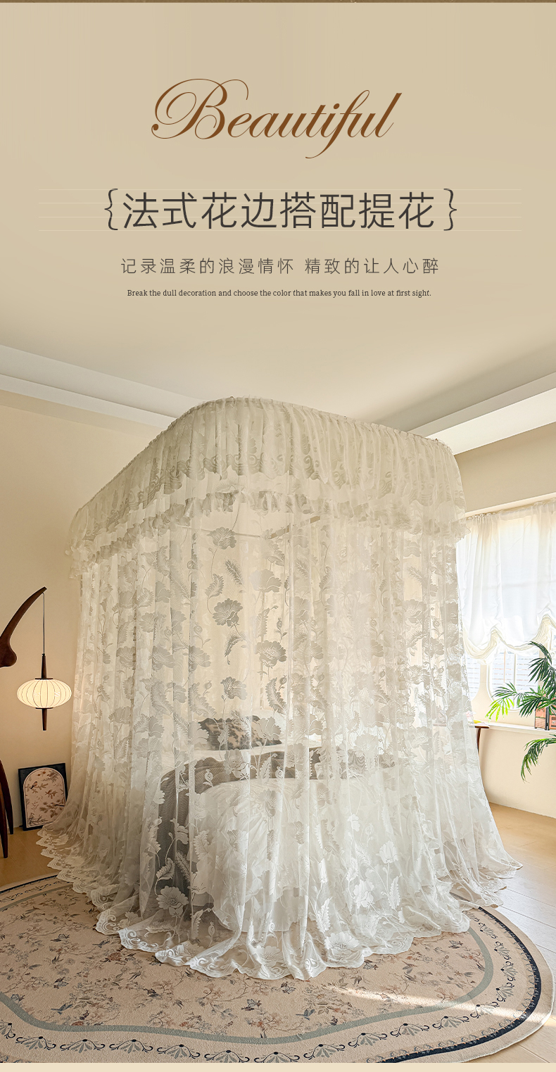 (总)都市缘蚊帐 2026新款春夏落地豪华高端蕾丝提花款导轨蚊帐-玫瑰庄园-905款,905玫瑰庄园-奶油白,905玫瑰庄园-奶油杏,905玫瑰庄园-奶油玉
