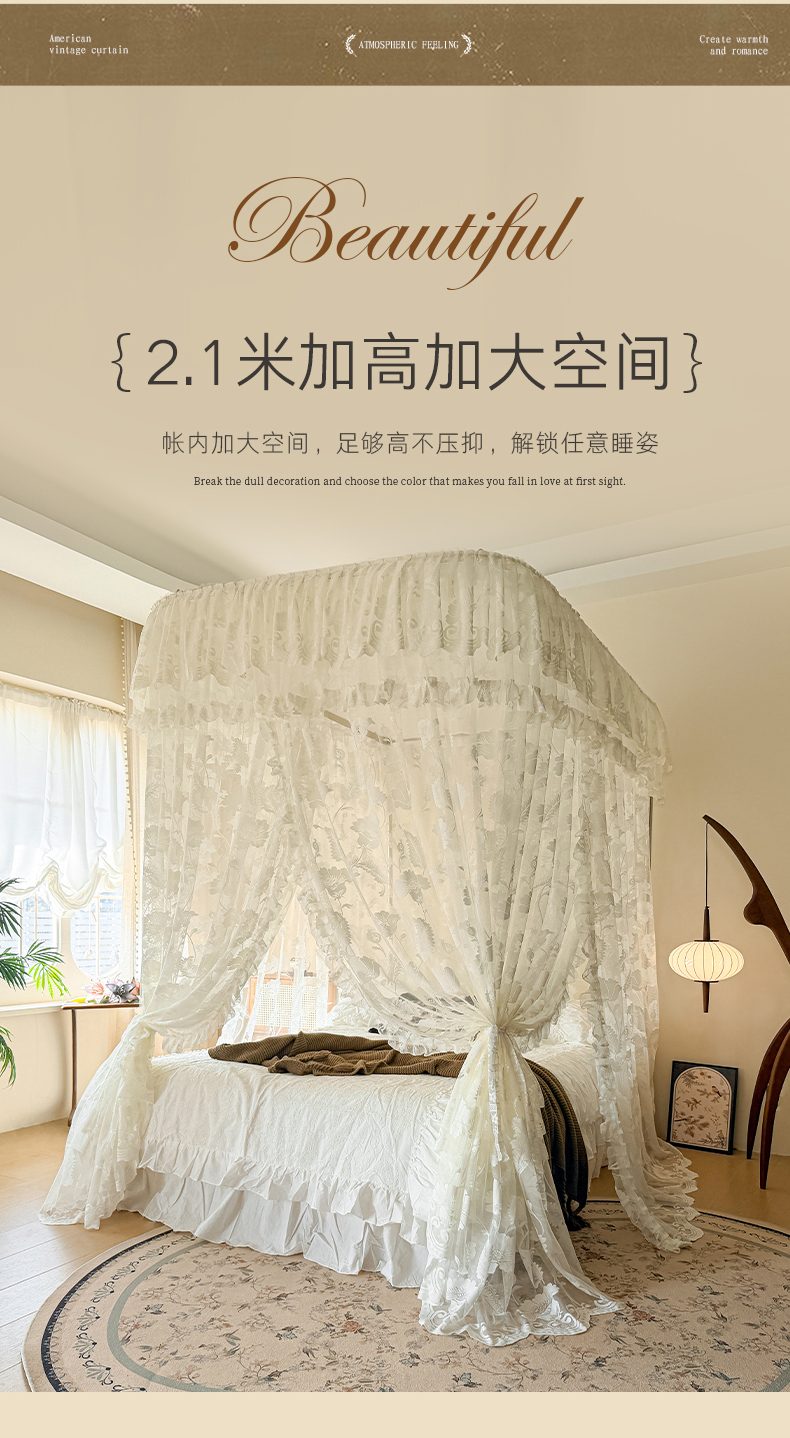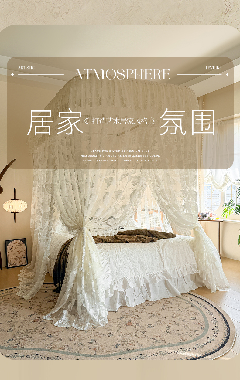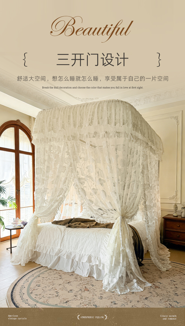 (总)都市缘蚊帐 2026新款浪漫905多丽棉纱落地宫廷蚊帐,麦芽杏-场景1,麦芽杏-场景2,粉扑色,摩卡,云雾白