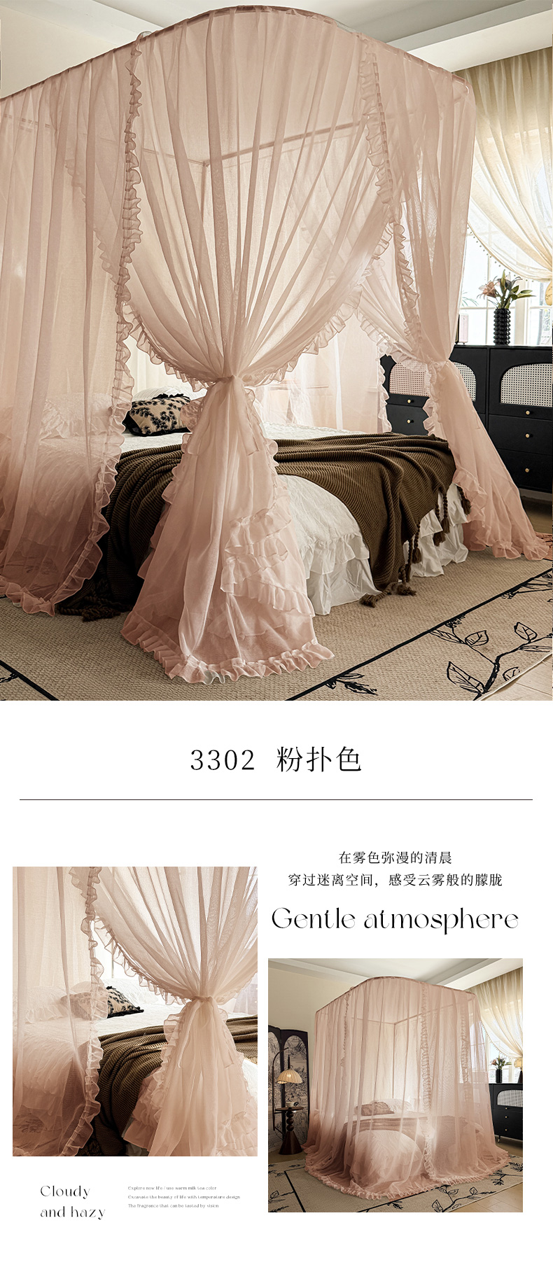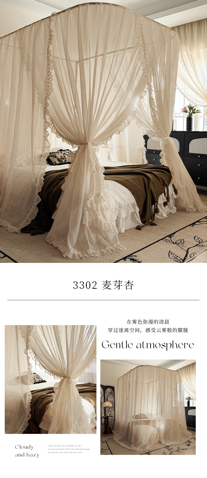 (总)都市缘蚊帐 2026新款浪漫905多丽棉纱落地宫廷蚊帐,麦芽杏-场景1,麦芽杏-场景2,粉扑色,摩卡,云雾白
