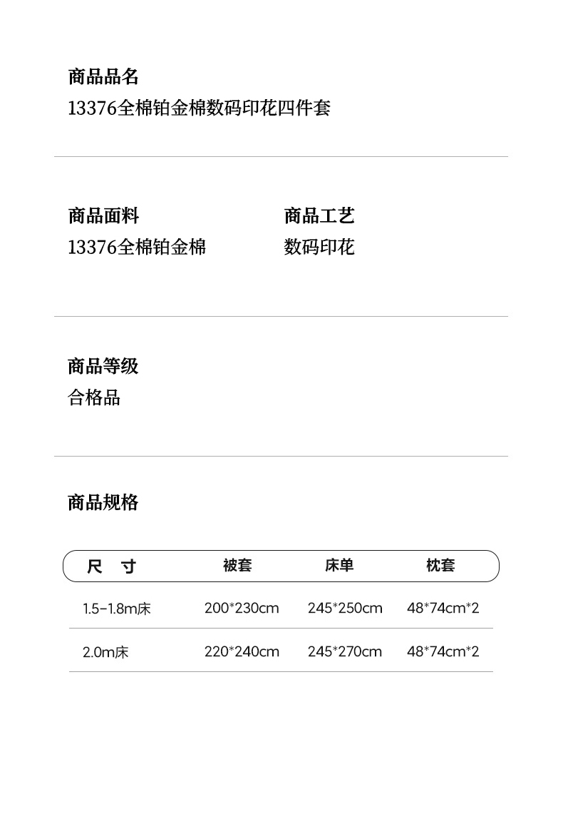 1.8m床笠款四件套 | ¥140.00 |