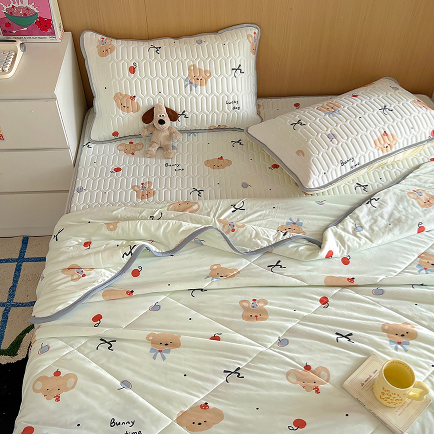 (总)希诺家居 2026新款冰肤格凉感夏被夏凉被空调被床笠四件套小冰格空调被,缤纷樱桃,春日花园熊,复古小马,海盐薄荷狗,蜜桔夏风,夏日松林,云朵小象