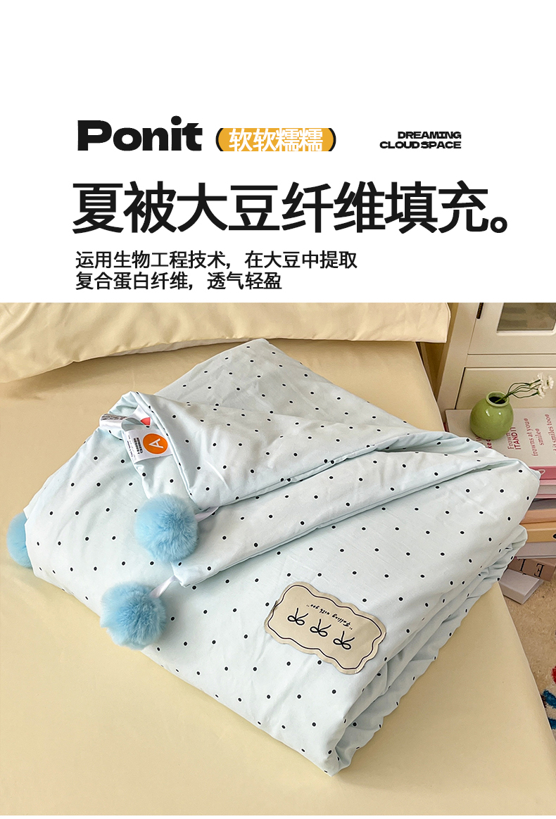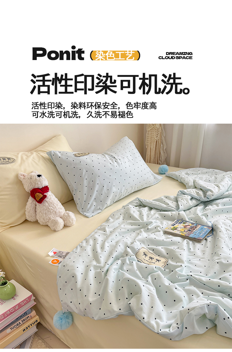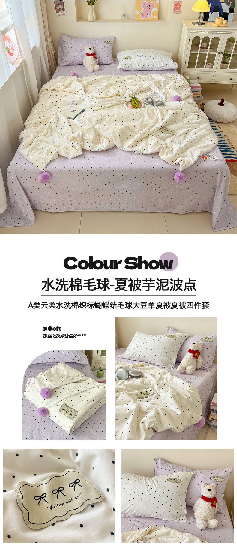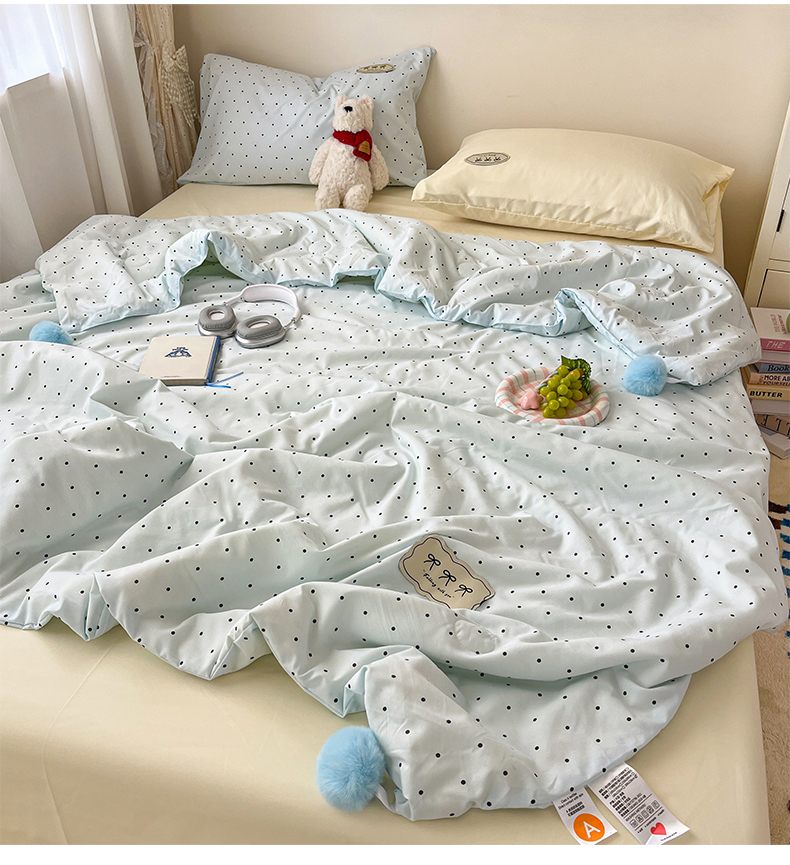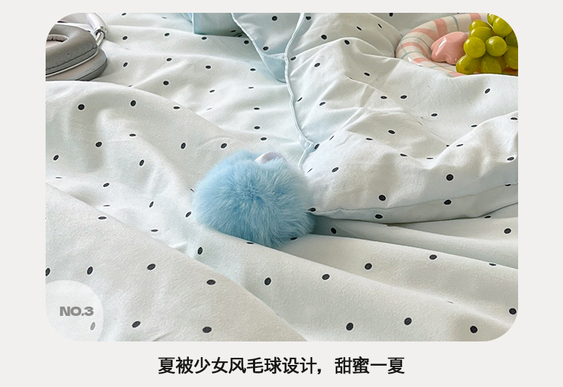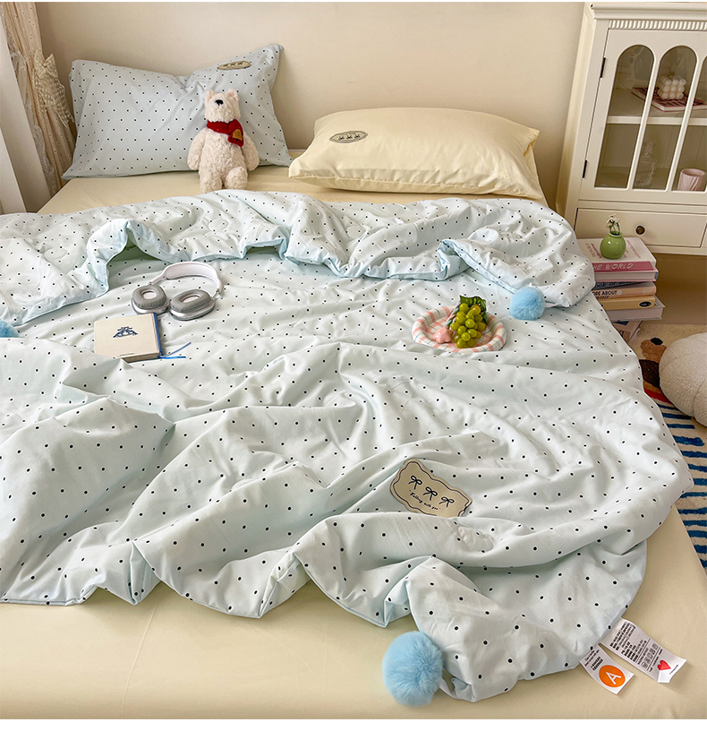 当前位置: 91家纺网 > 商品网购 > 床品套件 > 四件套 > 夏被四件套 > 桃心家居 2026新款A类ins云柔水洗棉织标蝴蝶结毛球少女大豆单夏被夏被四件套系列 水洗棉毛球-夏被薄荷布丁