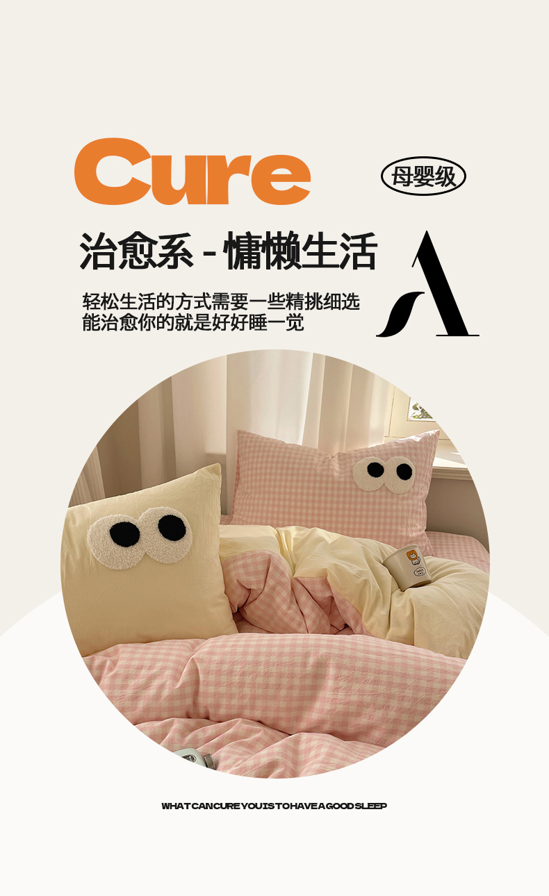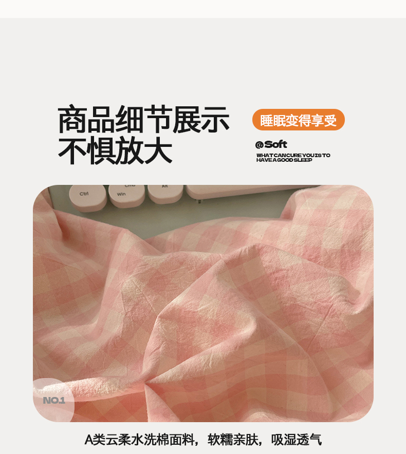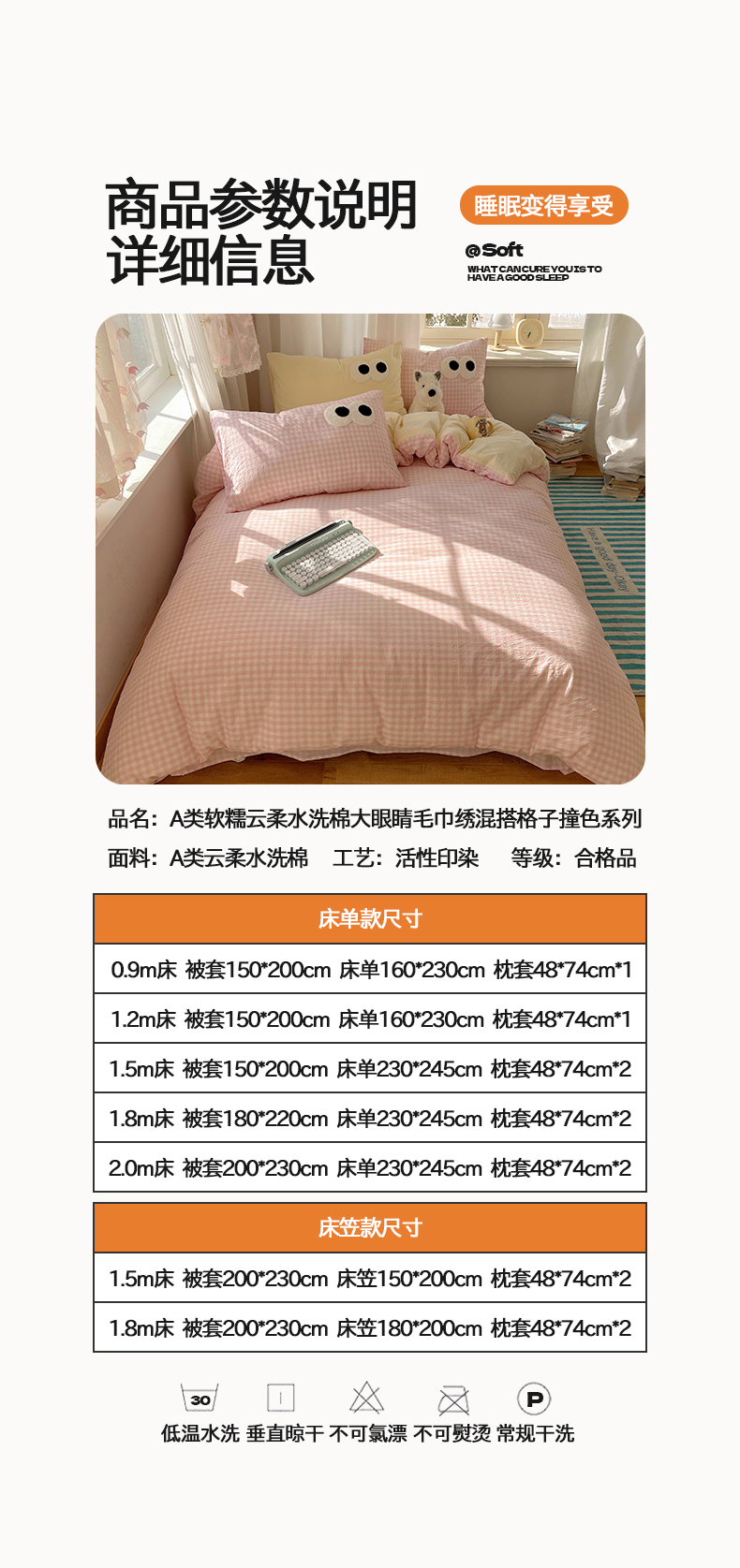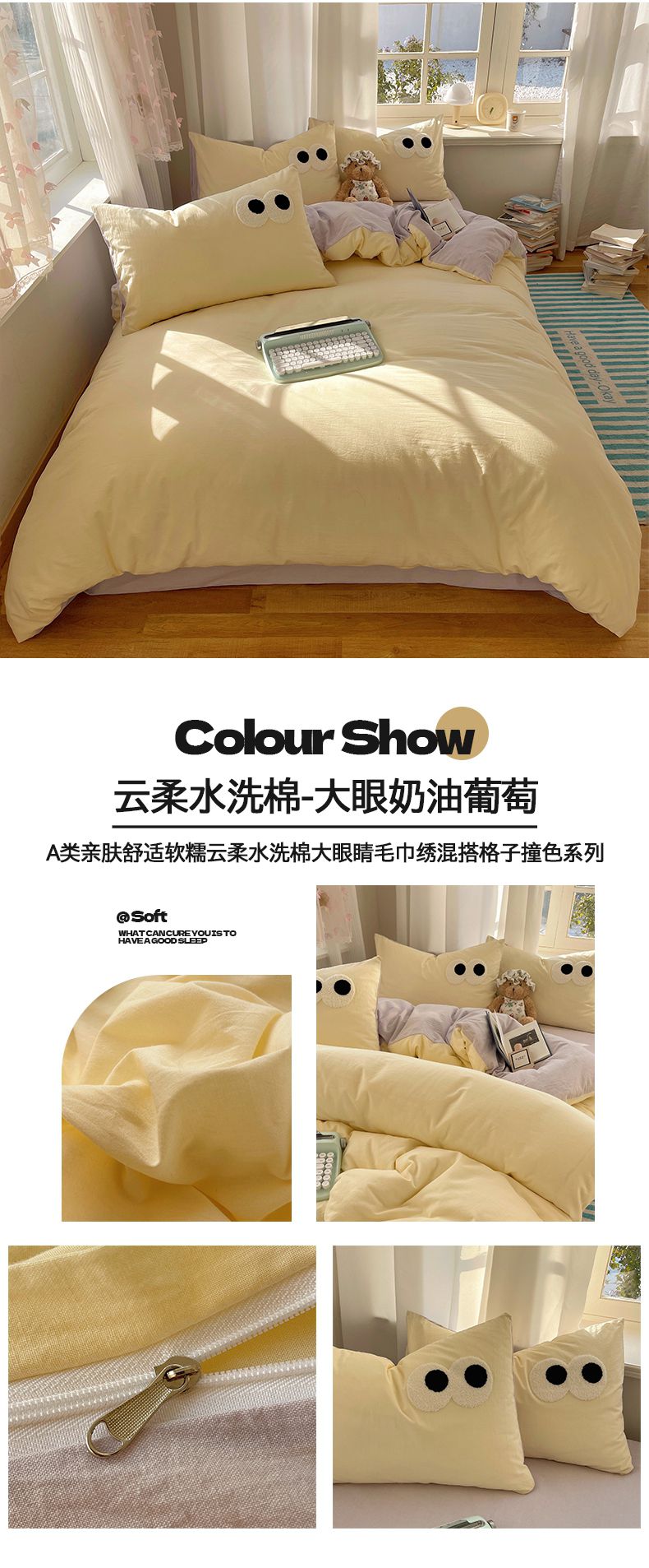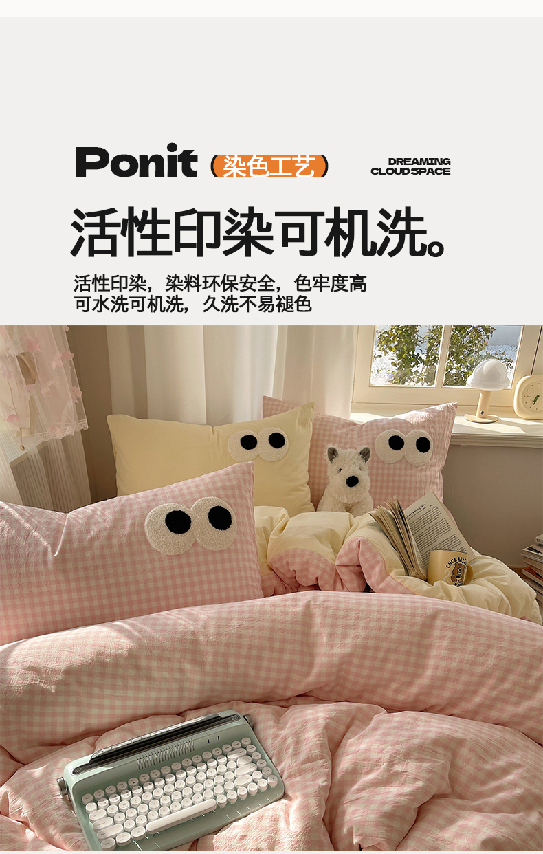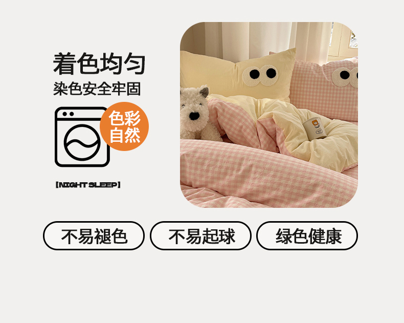 当前位置: 91家纺网 > 商品网购 > 床品套件 > 四件套 > 毛巾绣四件套 > 桃心家居 2026新款A类亲肤舒适软糯云柔水洗棉大眼睛毛巾绣混搭格子撞色系列四件套 云柔水洗棉-大眼粉小格奶黄