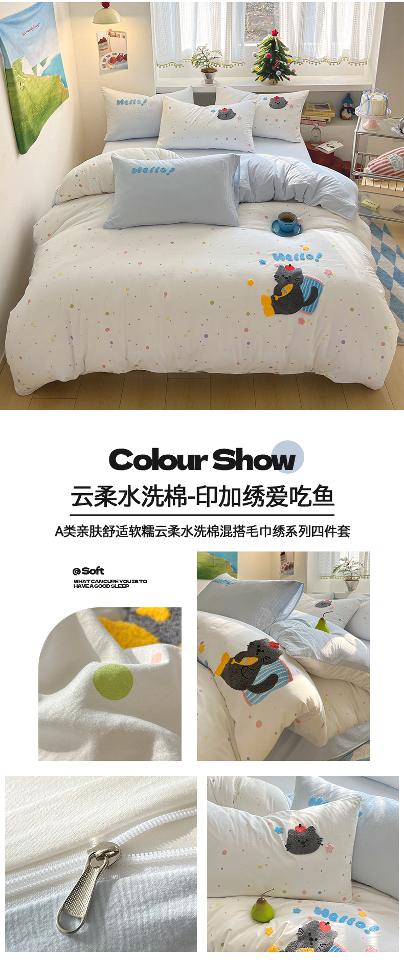 (总)桃心家居 2026新款A类亲肤舒适软糯云柔水洗棉数码印花混搭少女卡通奶乎乎系列四件套,云柔水洗棉-奶咖小腊肠,云柔水洗棉-混搭甜品屋,云柔水洗棉-甜心蓝格猫,云柔水洗棉-甜甜圈美蒂,云柔水洗棉-奶咖心愿猫,云柔水洗棉-甜甜布偶猫