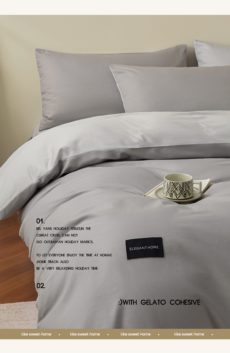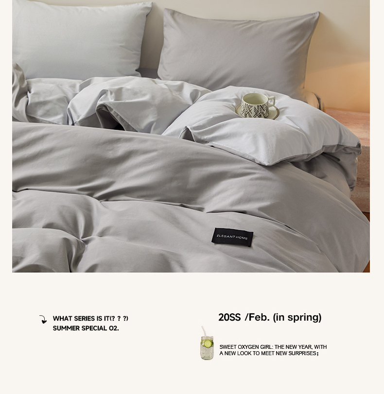 当前位置: 91家纺网 > 商品网购 > 床品套件 > 四件套 > 全棉普通四件套 > 寐眠 2026新款全棉纯棉纯色双拼四件套 浅灰素影