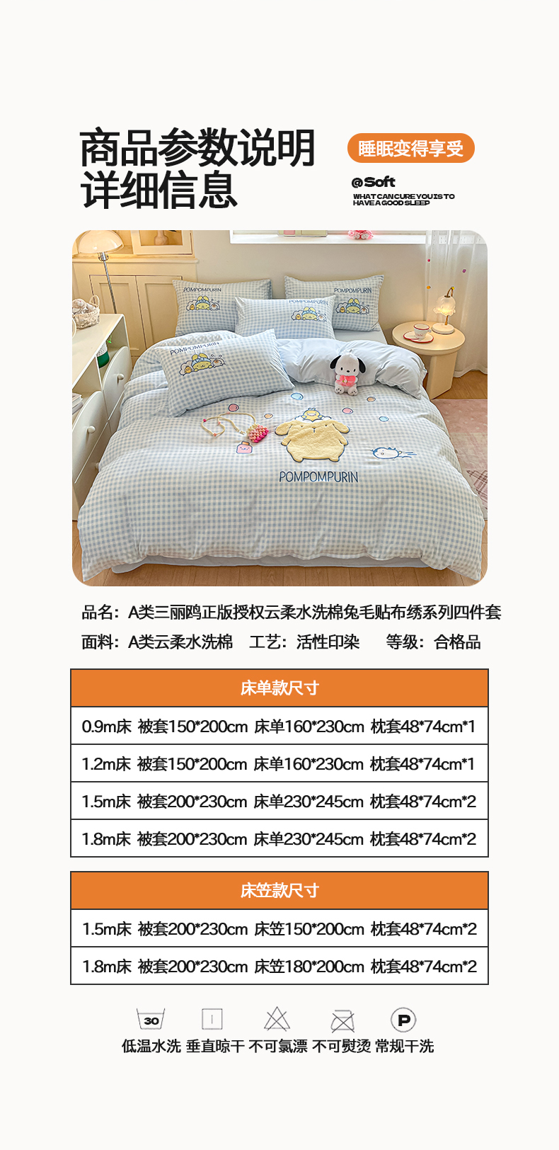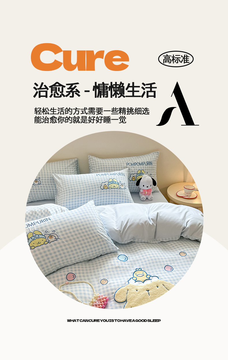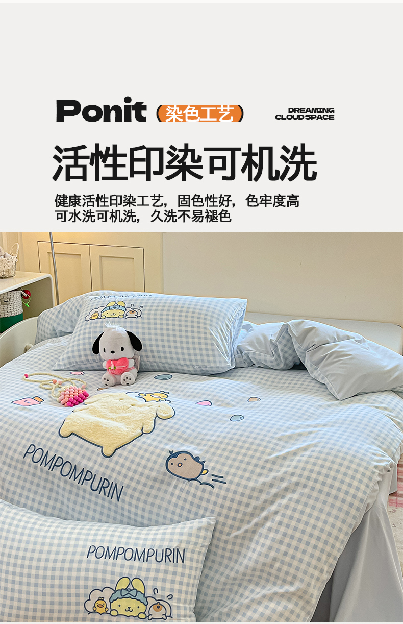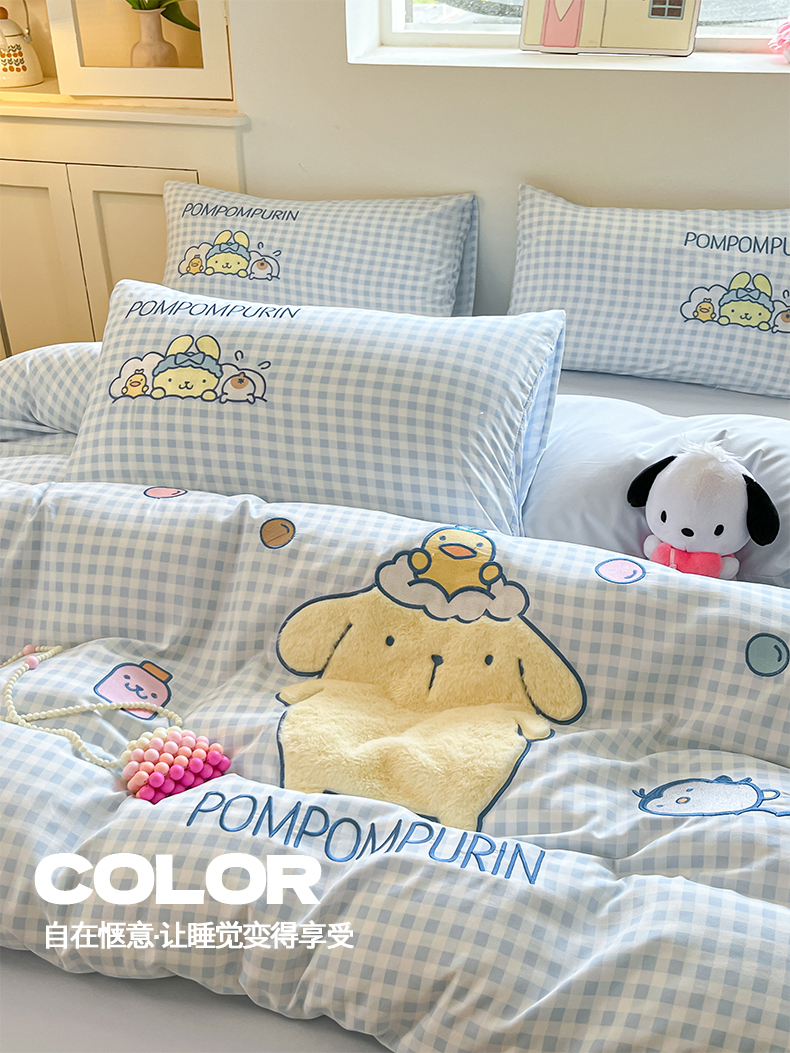 当前位置: 91家纺网 > 商品网购 > 床品套件 > 四件套 > 水洗棉四件套 > 桃心家居 2026新款A类三丽鸥正版授权云柔水洗棉兔毛贴布绣刺绣软糯系列四件套 云柔水洗棉-贴布绣萌萌布丁狗