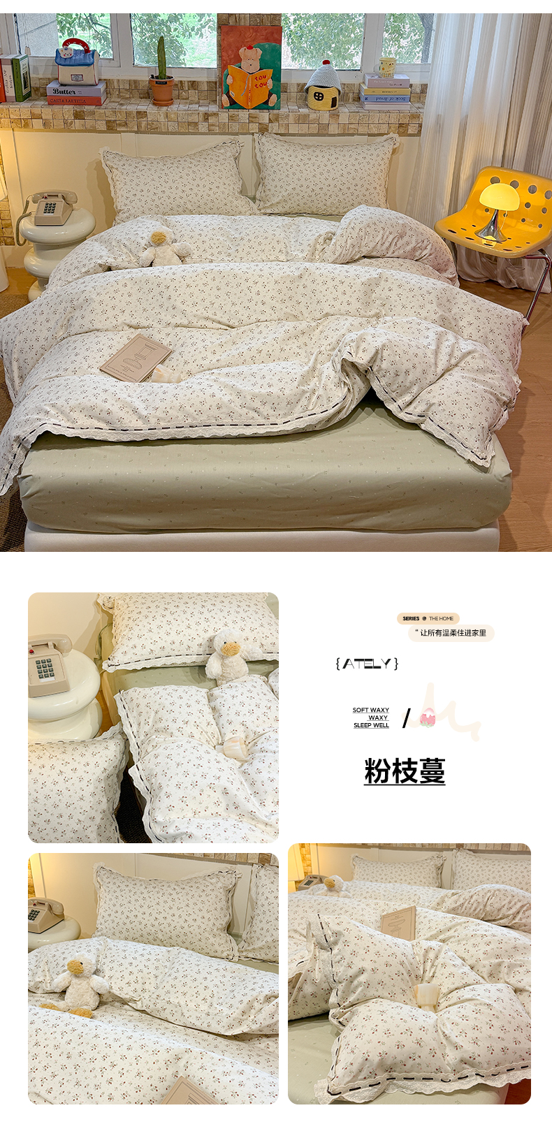 商品名称:壹和 2026新款全棉法式小清新复古碎花四件套 粉枝蔓