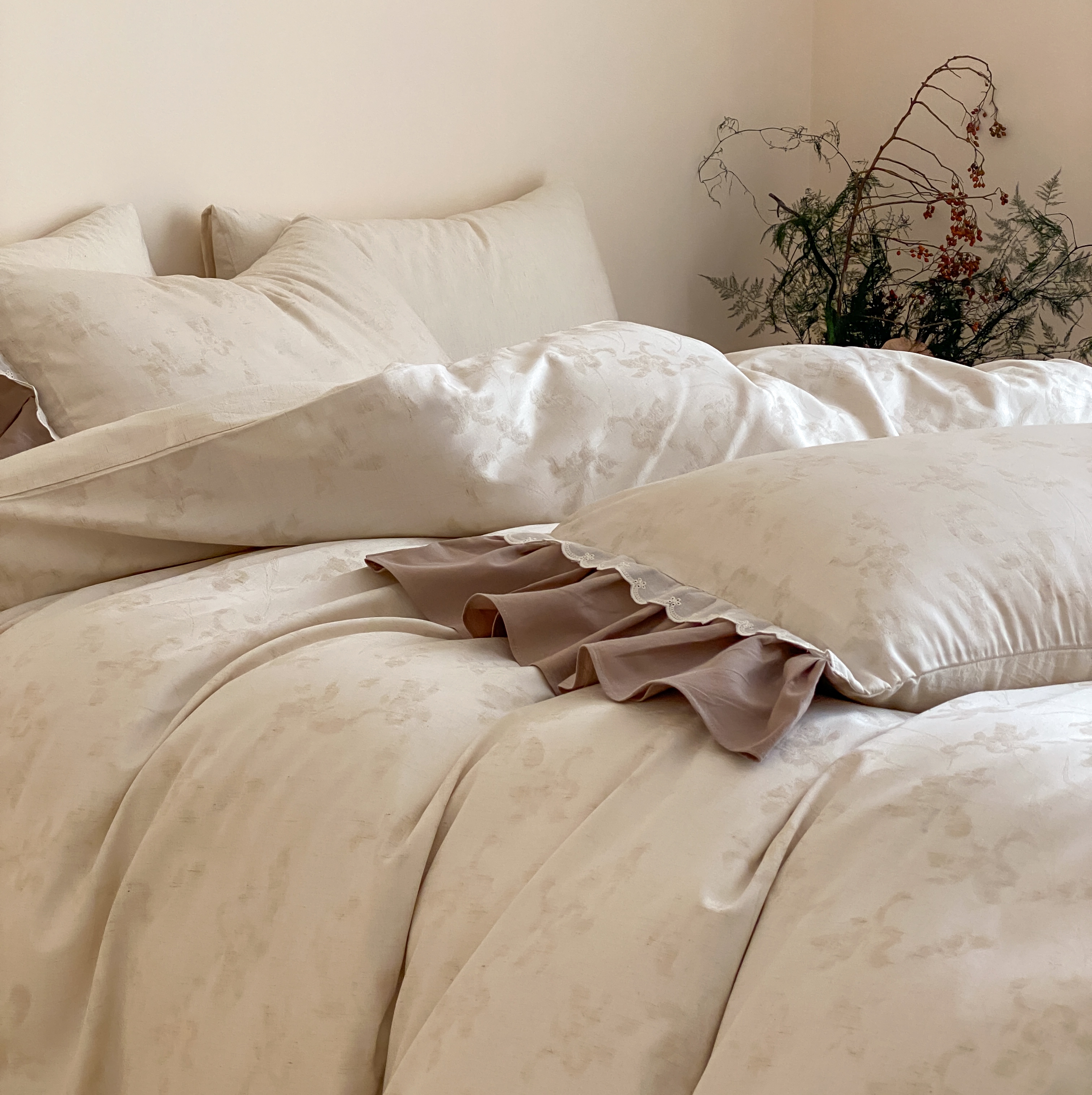 当前位置: 91家纺网 > 商品网购 > 床品套件 > 四件套 > 棉麻四件套 > (总)玉宇阁家居 2026新款色织棉麻大提花四件套-花边款