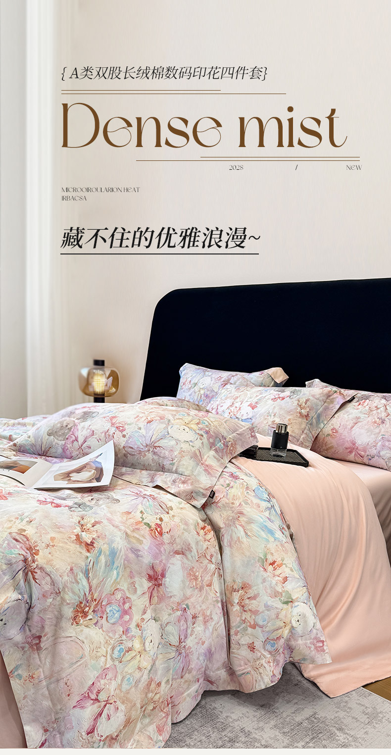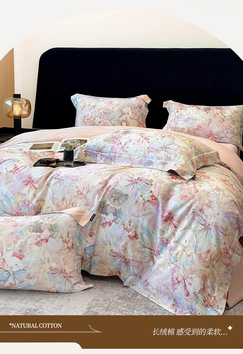 当前位置: 91家纺网 > 商品网购 > 床品套件 > 四件套 > 长绒棉四件套 > 2026新款A类100支长绒棉纯棉四件套全棉数码印花被套床单床笠田园风床上用品 黛梦-粉