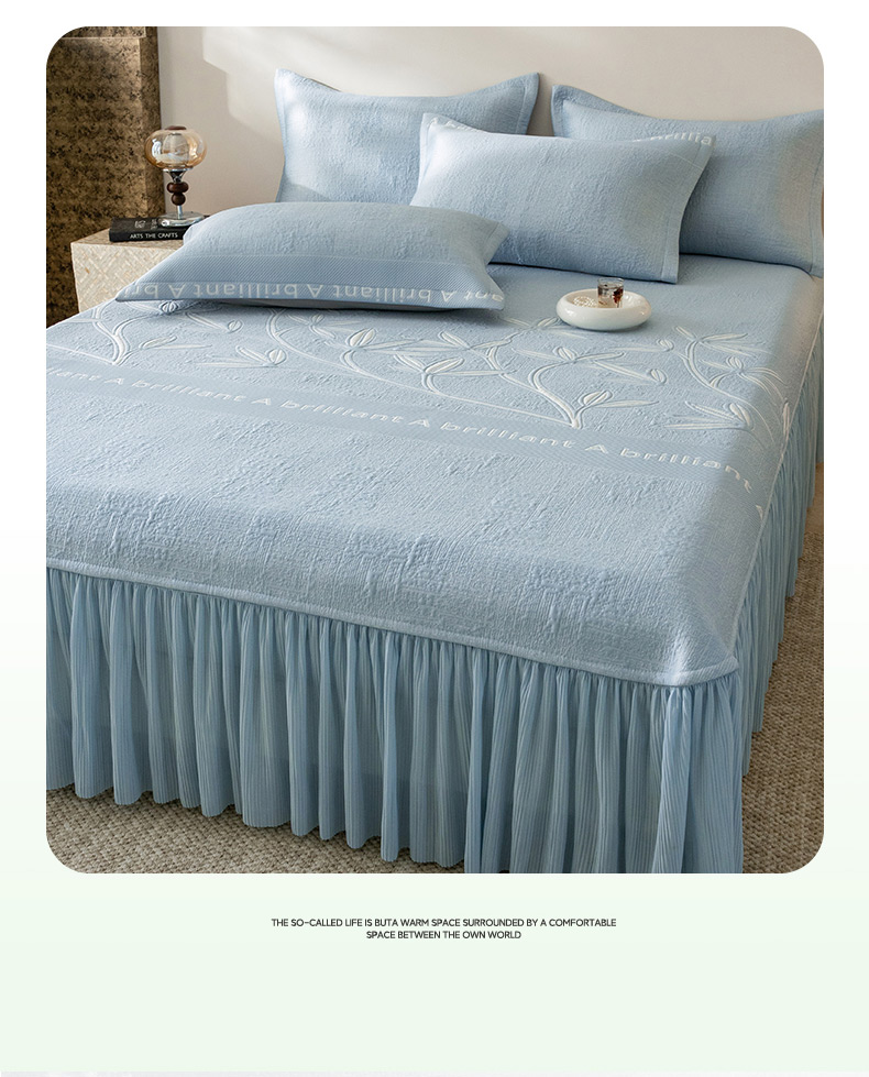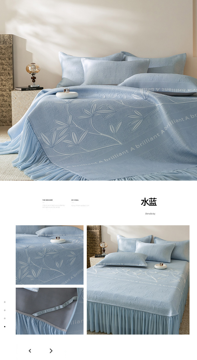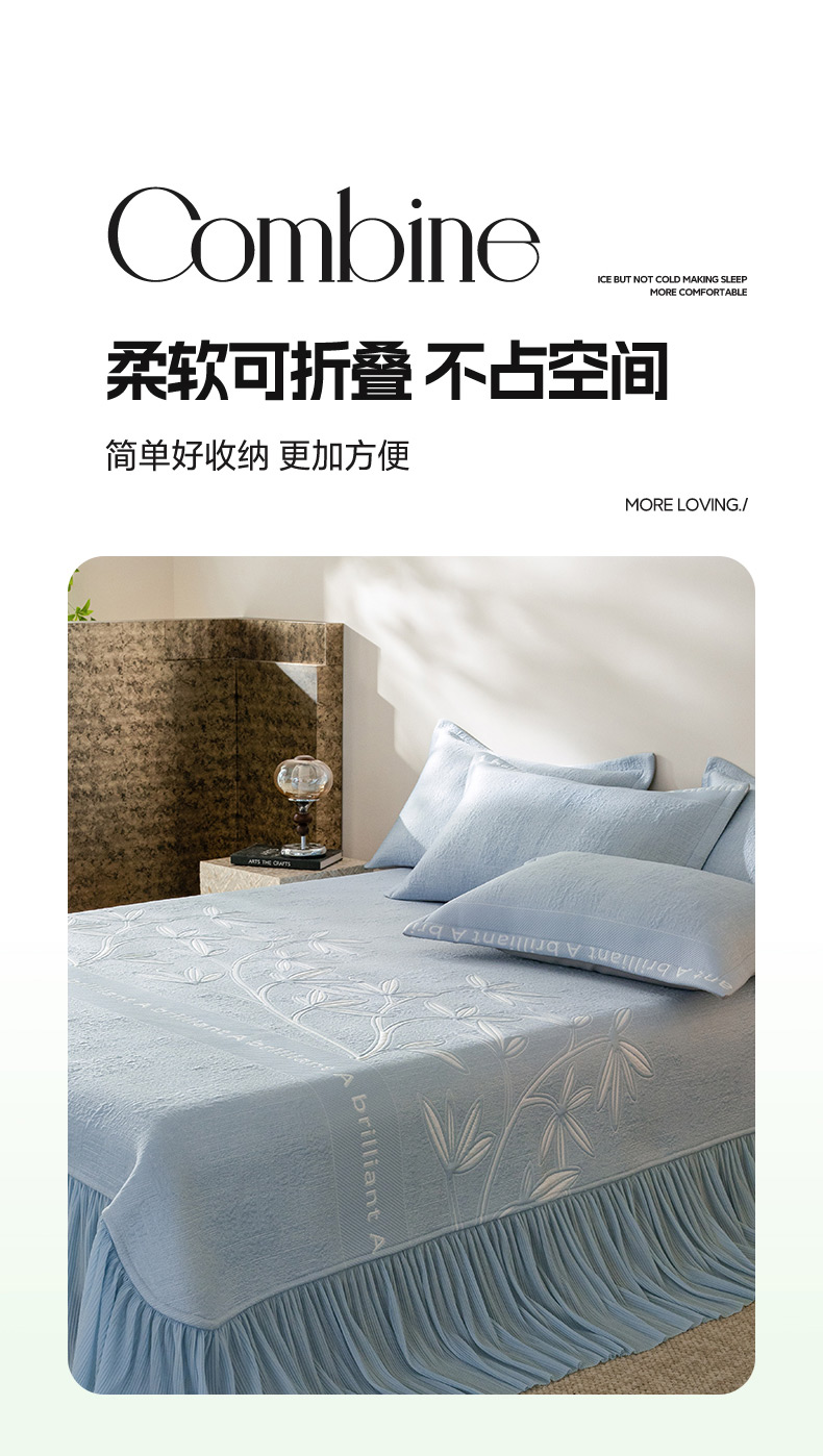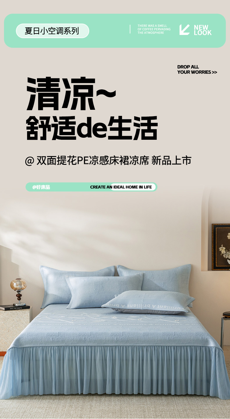(总)红夫人 2026新款凉豆豆PE高分子凉感绣花弯边床裙凉席三件套--安然影(三层花边+三明治复合+精美手提包),安然影茶绿,安然影蓝色,安然影浅粉,安然影紫色