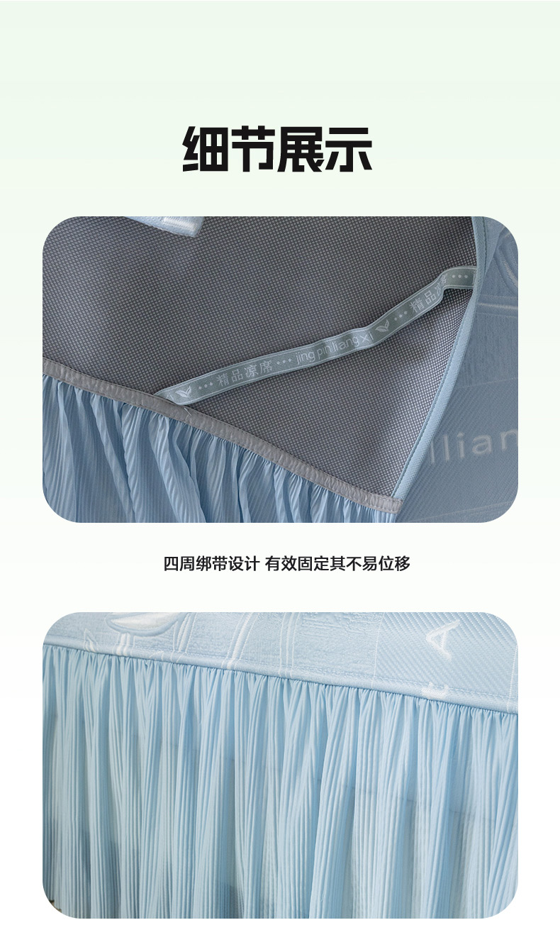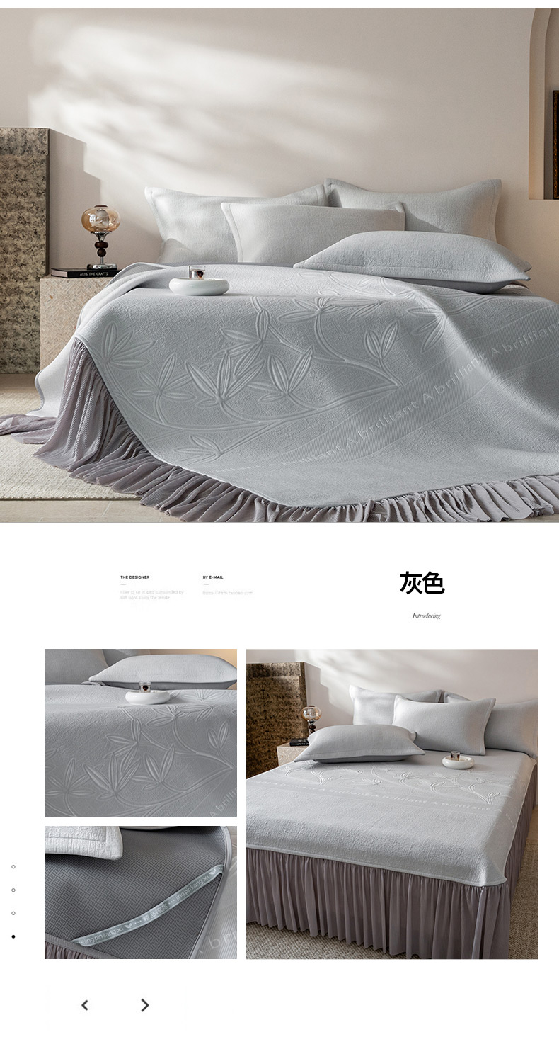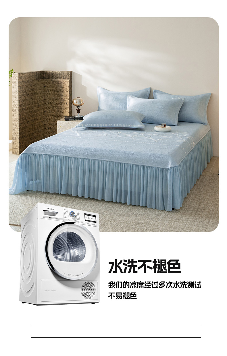 (总)红夫人 2026新款凉豆豆PE高分子凉感凉席双色提花床裙款三件套--兰芝(风琴花边+三明治复合+精美手提包),兰芝灰色,兰芝蓝色,兰芝浅粉,兰芝浅绿
