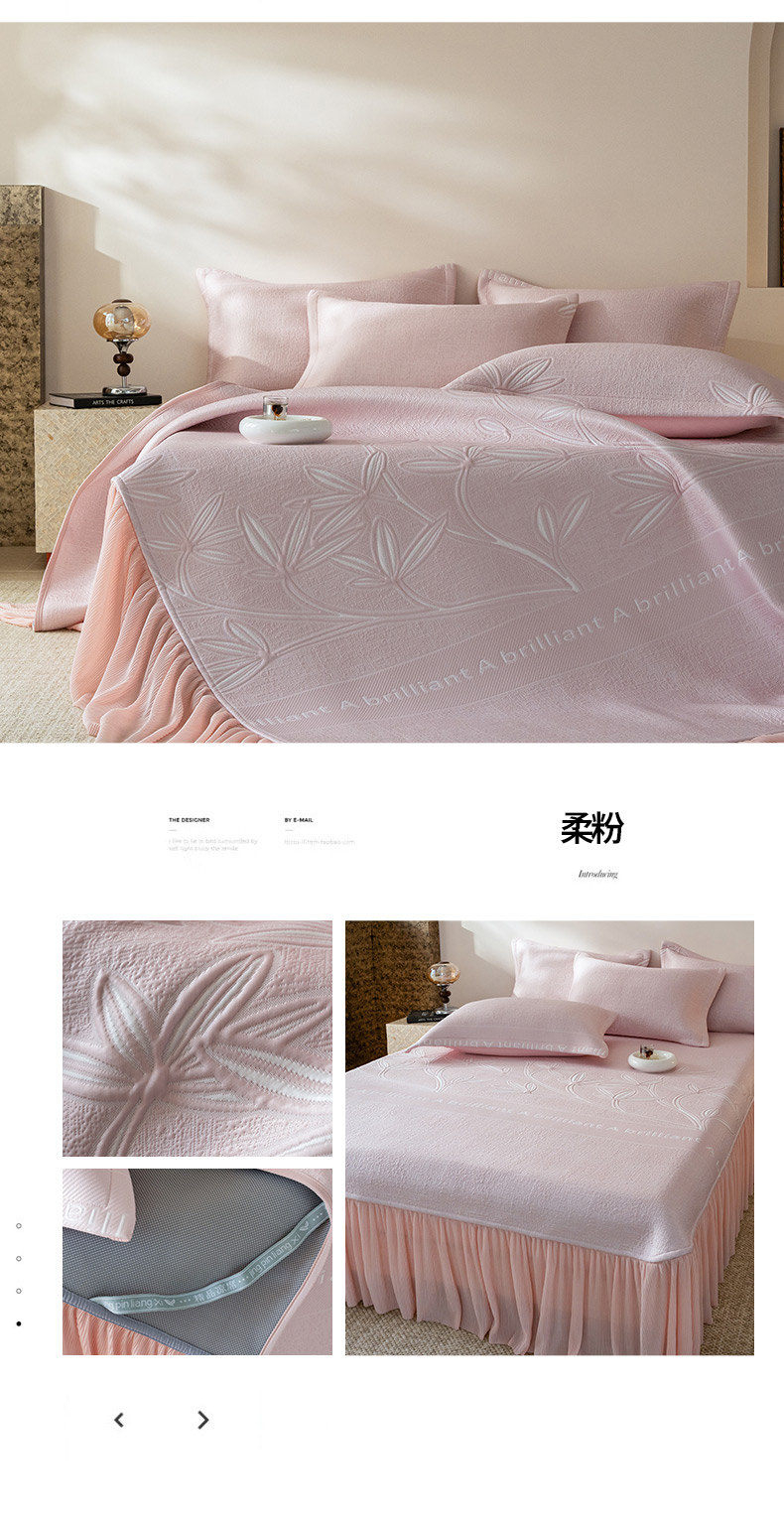 (总)红夫人 2026新款凉豆豆PE高分子凉感弯边床裙凉席三件套--小确幸(三明治复合+精美手提包),小确幸粉色,小确幸蓝色,小确幸绿色,小确幸紫色