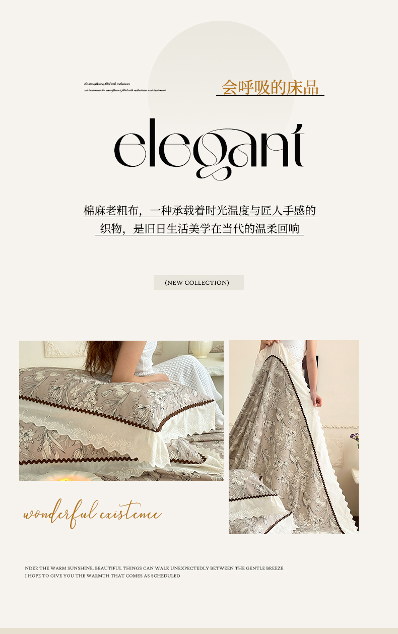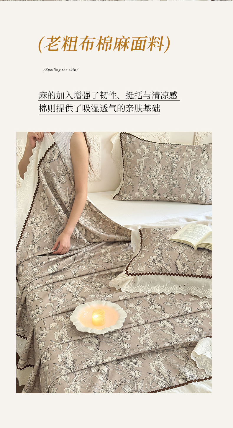 (总)乐朵家居 2026春夏 南木 全棉棉麻床单款夹棉床盖款 四件套,本色,奶咖
