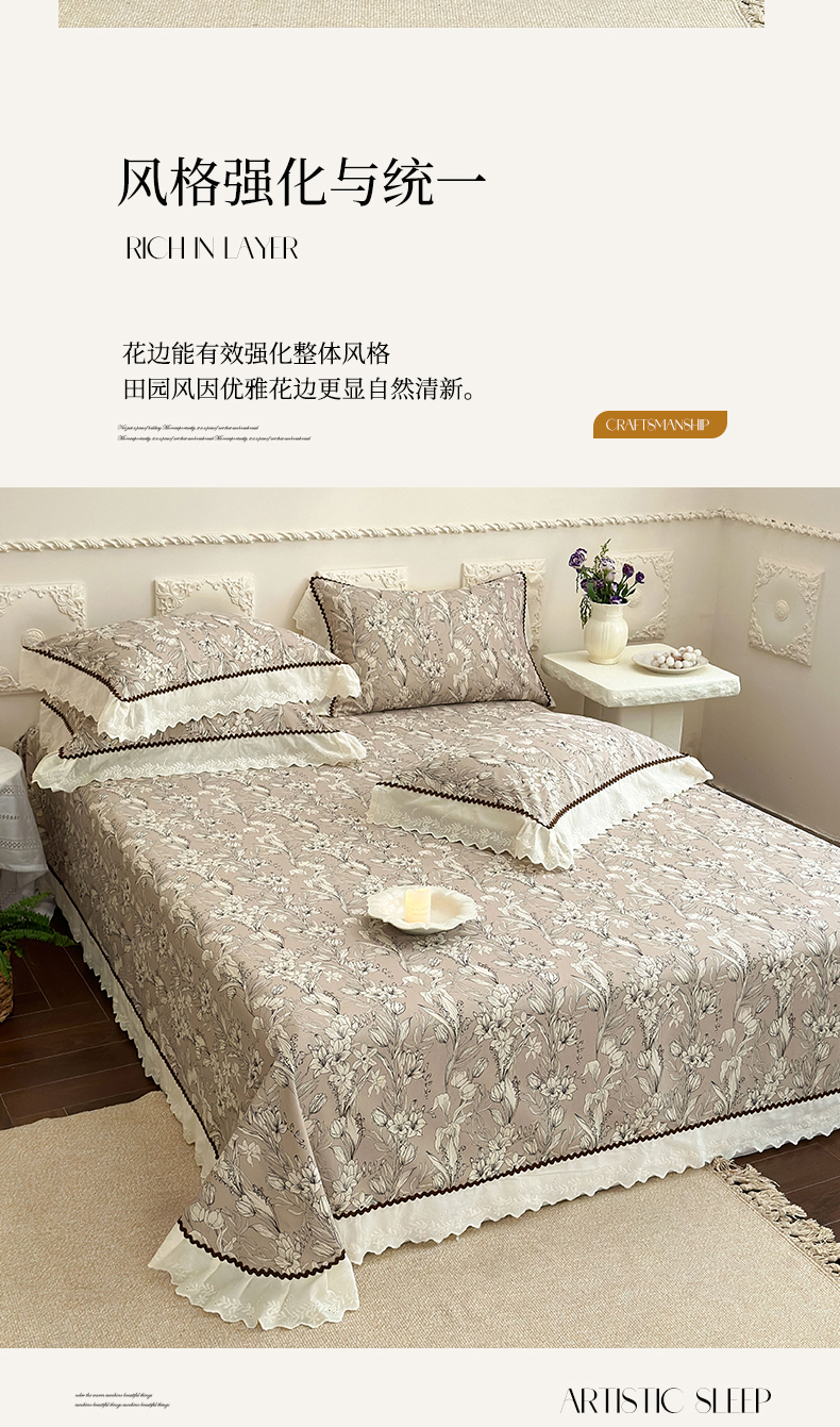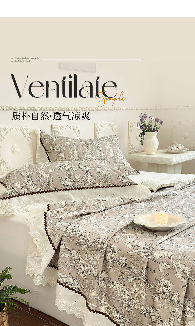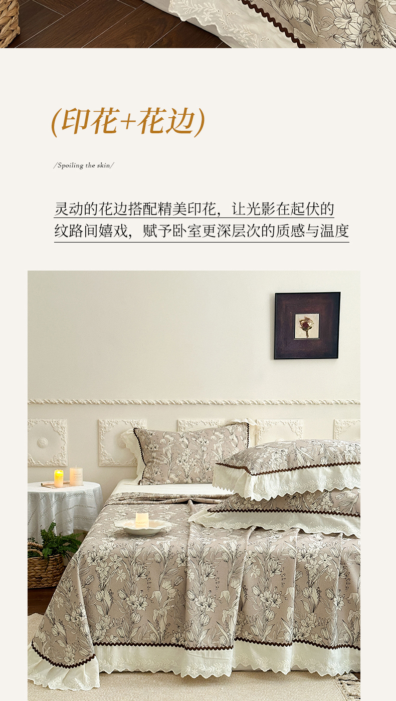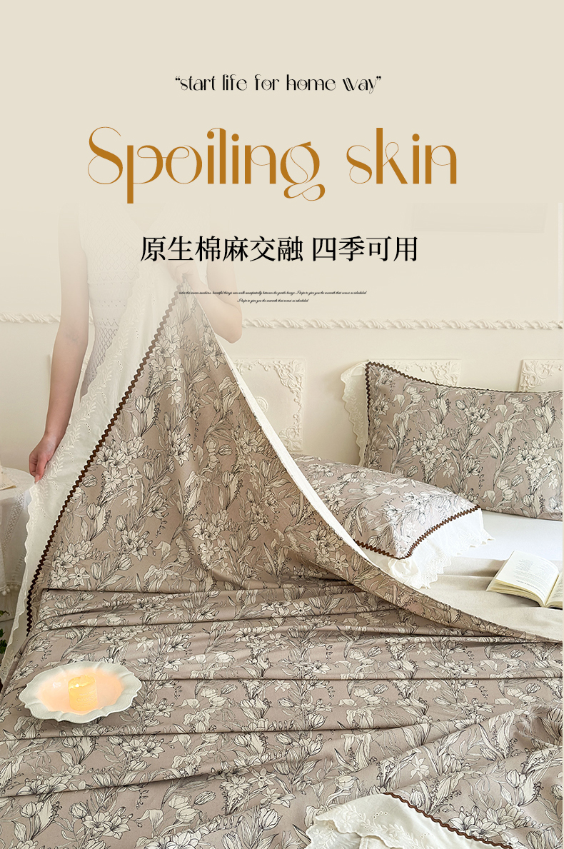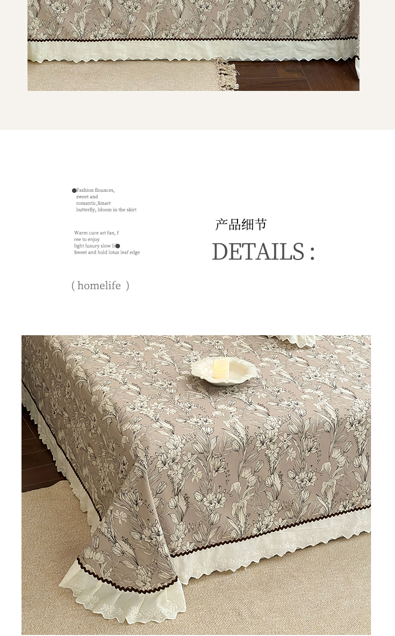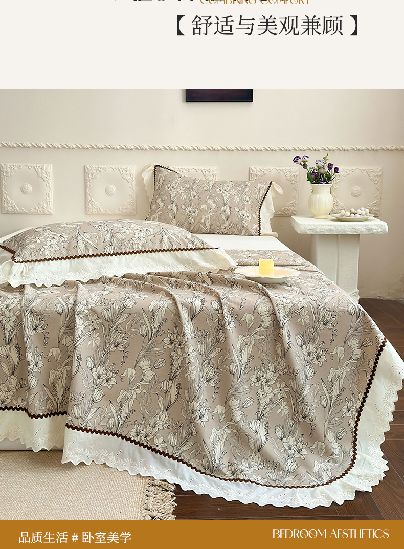 (总)乐朵家居 2026新款 25-3郁金香 天丝缎蕾丝床裙+可配空调被,绿,豆沙,奶白,灰,紫,卡其