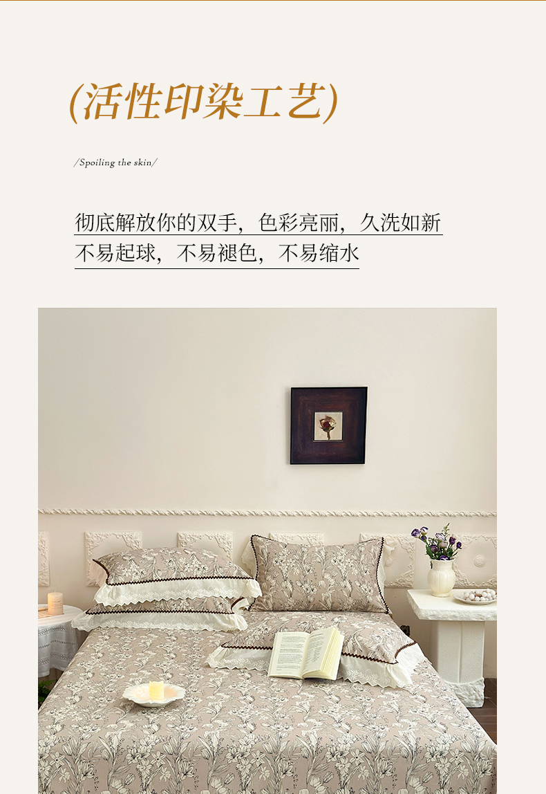 (总)乐朵家居 2026春夏 秘密花园 全棉水洗棉床单款VS夹棉床盖四件套 (控价单288夹棉388),蓝,卡其,白,玉