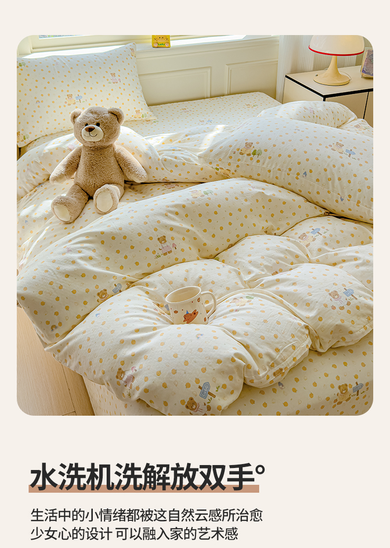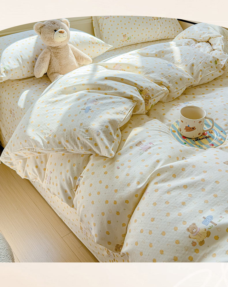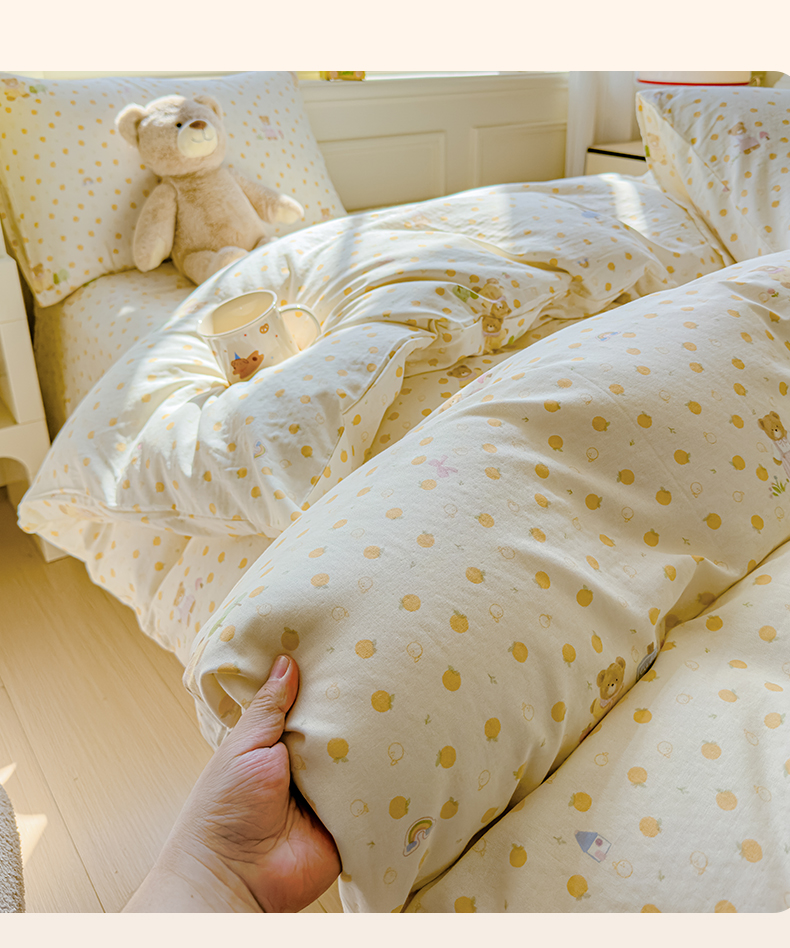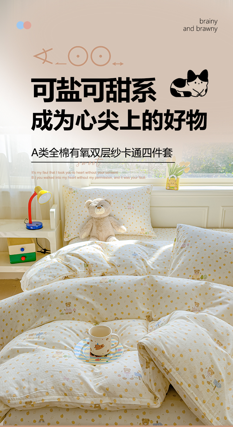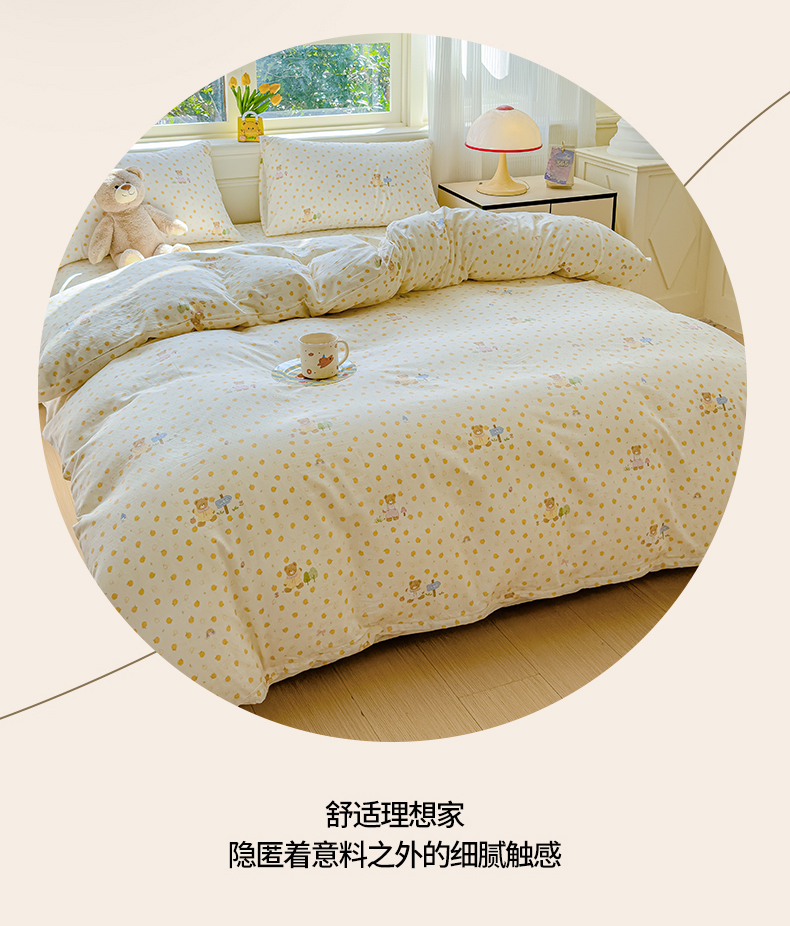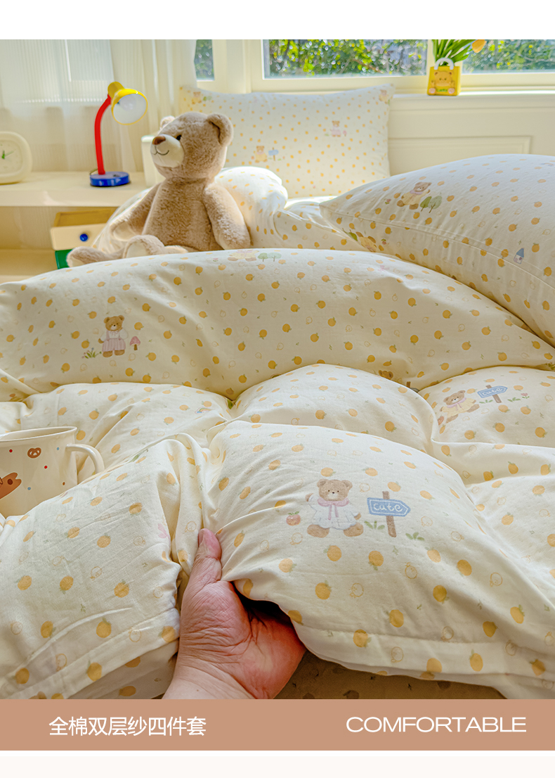 当前位置: 91家纺网 > 商品网购 > 床品套件 > 四件套 > 双层纱四件套 > 感遇家纺 2026春夏新款双层纱全棉纯棉系列四件套-第一批 橙子小熊