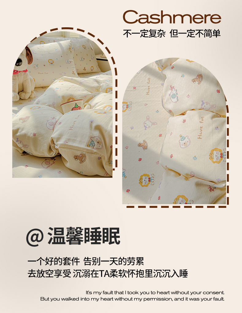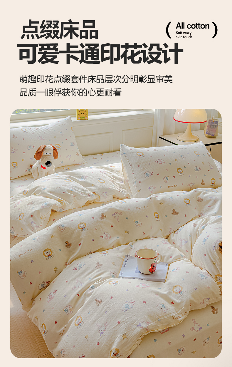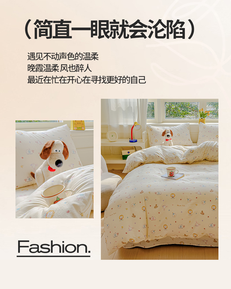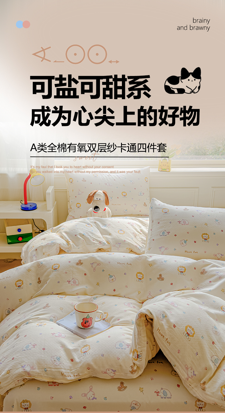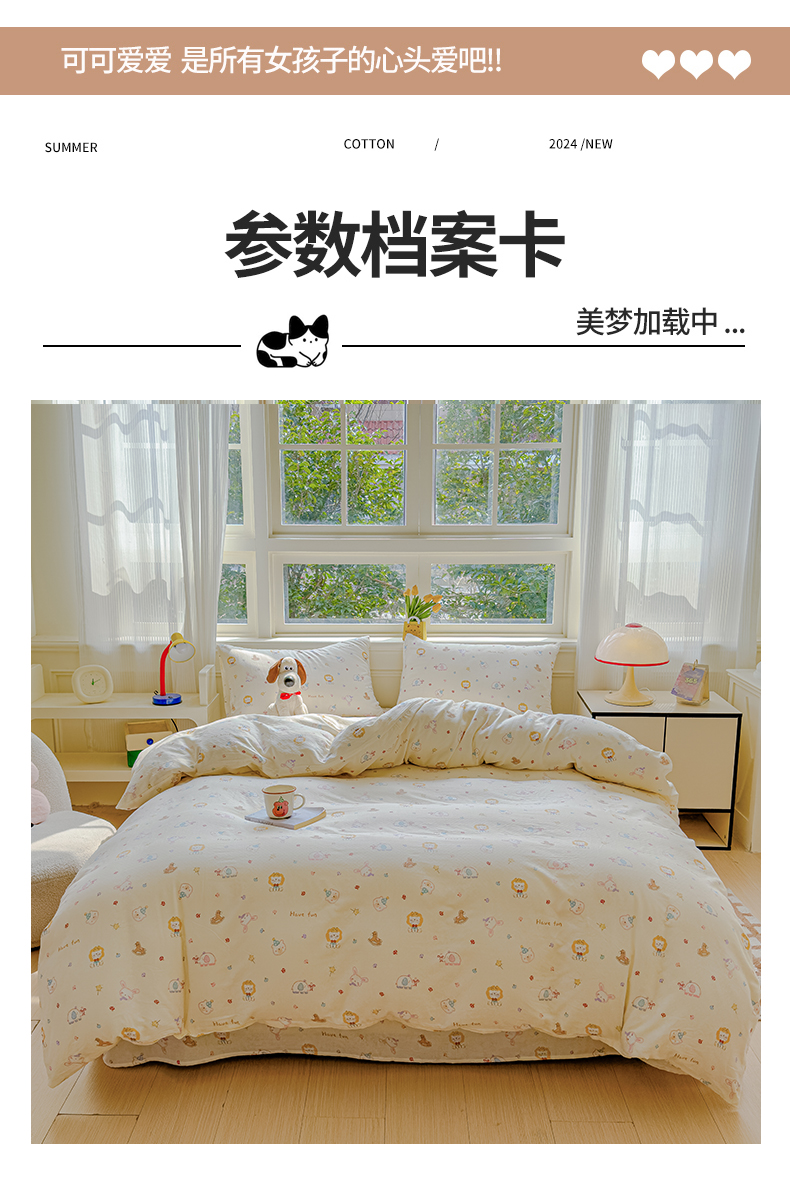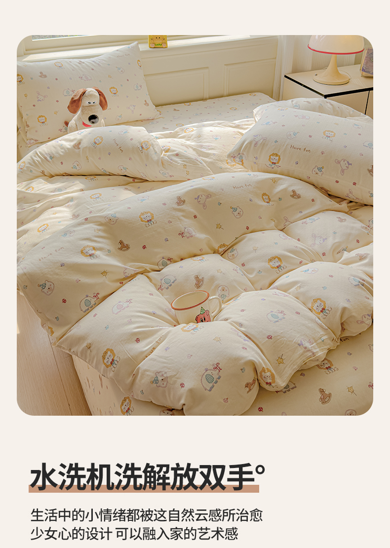 当前位置: 91家纺网 > 商品网购 > 床品套件 > 四件套 > 双层纱四件套 > 感遇家纺 2026春夏新款双层纱全棉纯棉系列四件套-第一批 萌宠乐园·米黄