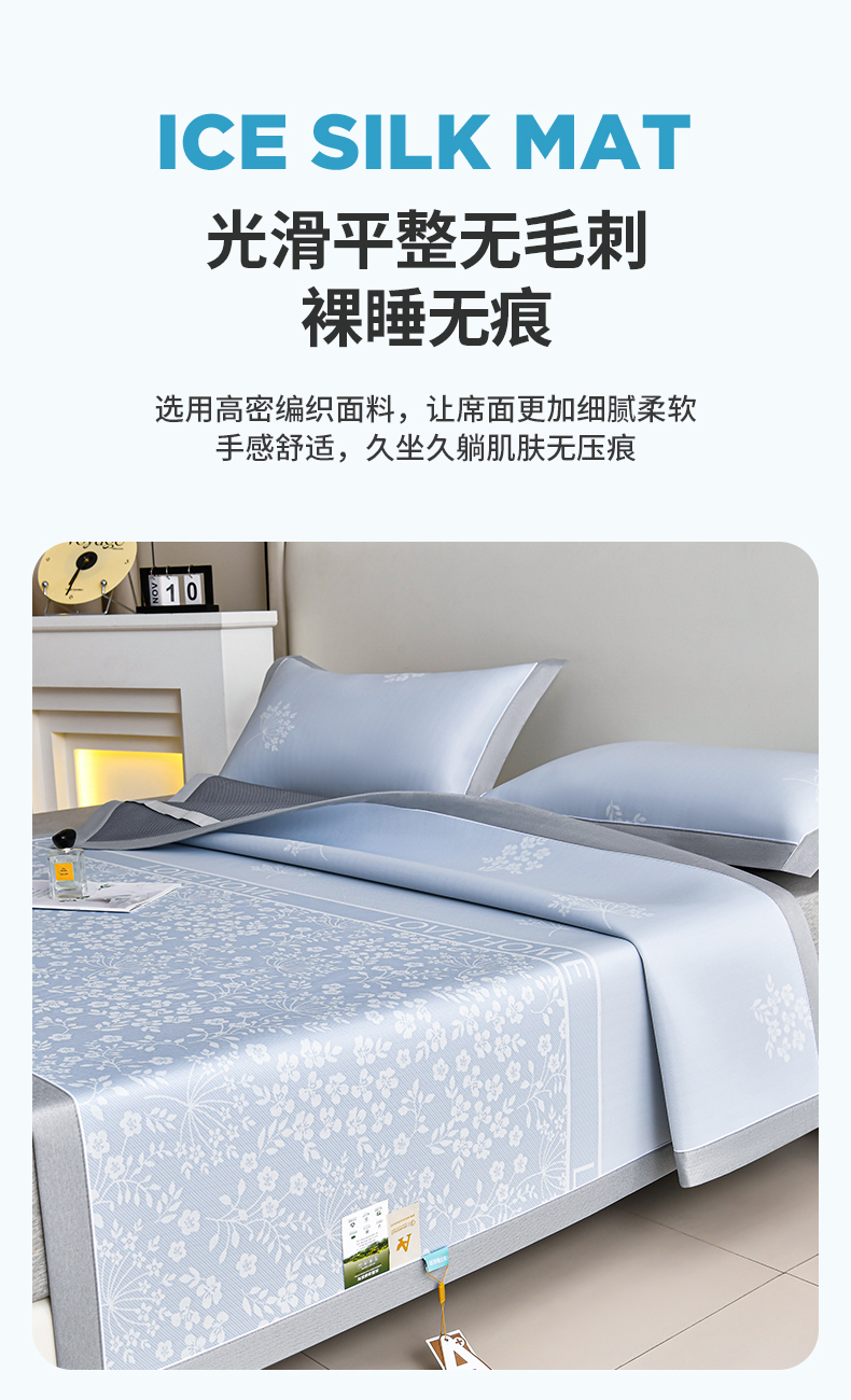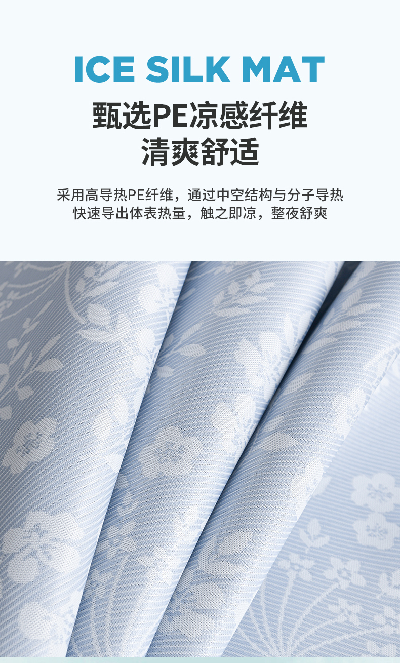 小牛席业 2026春夏新款【实拍风格】PE凉感小碎花提花冰丝席 蓝色