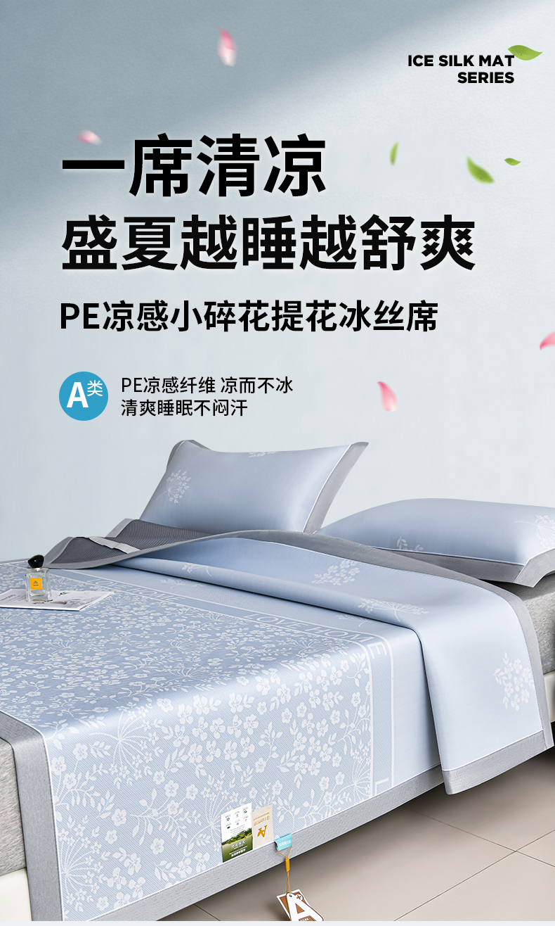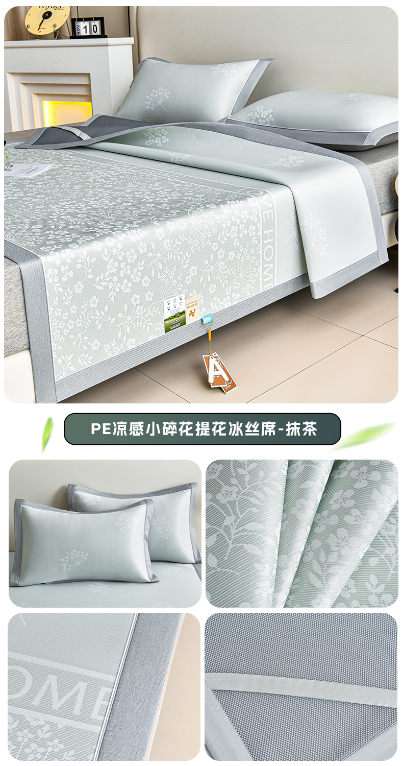 (总)小牛席业 2026春夏新款【实拍风格】PE凉感小碎花提花冰丝席,灰色,粉色,蓝色,抹茶,香槟