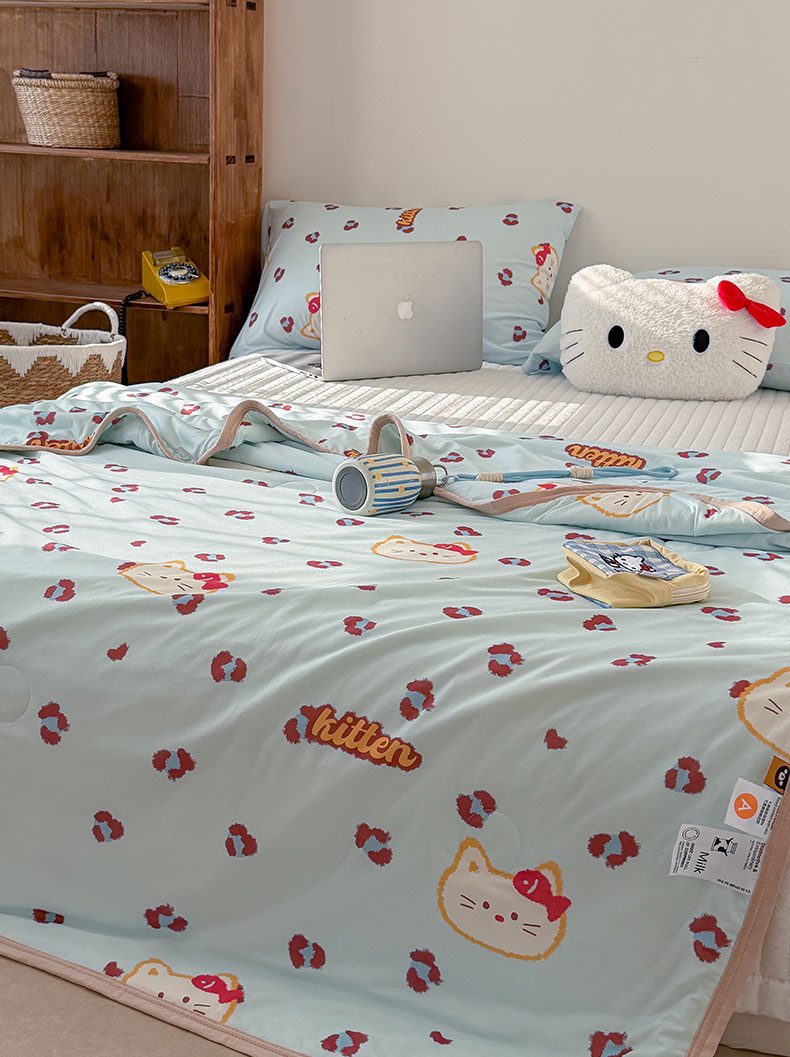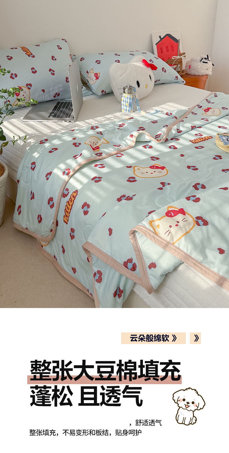 商品名称:桃子家居 2026新款A类卡通小清新印花高品质牛奶丝软糯针织棉包边夏被系列 针织棉-豹纹猫猫蓝