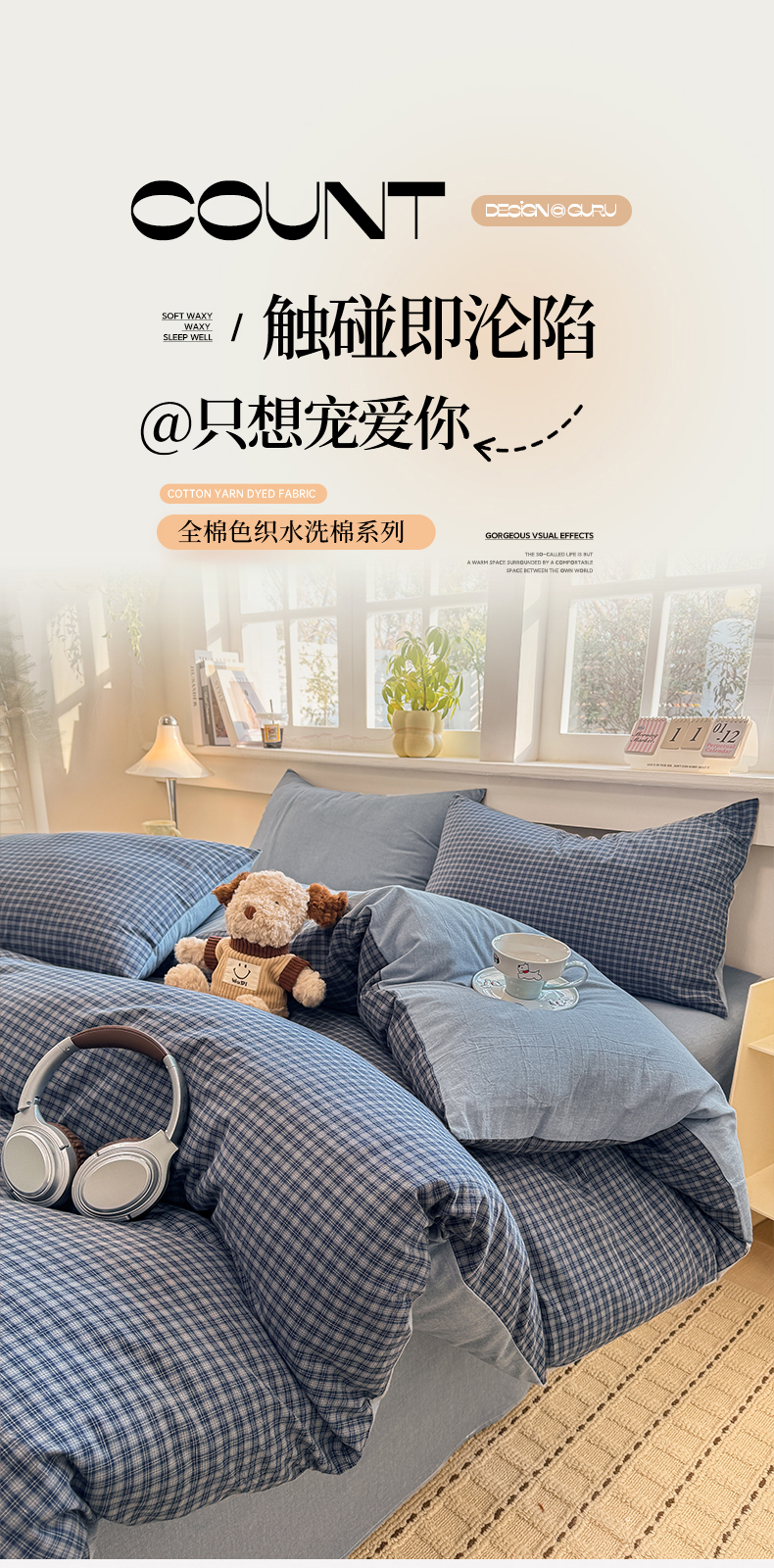 (总)梦依依 2026新款全棉色织水洗棉拉链款四件套,玛丽兰,巴赫兰,琥珀红,琥珀灰,浣花粉,蓝细条,蓝小格,玛丽绿,木槿黑,木槿咖,柠檬卡其,晚晴红,云岫兰咖,云岫绿咖