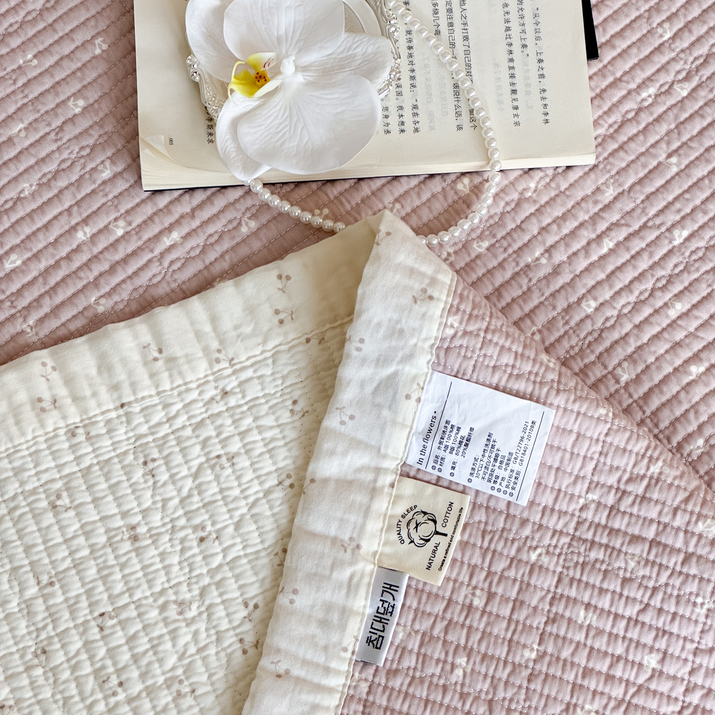商品名称:床盖工厂店 2026春夏新款双面100%全棉填充80棉花床盖三件套 樱语粉