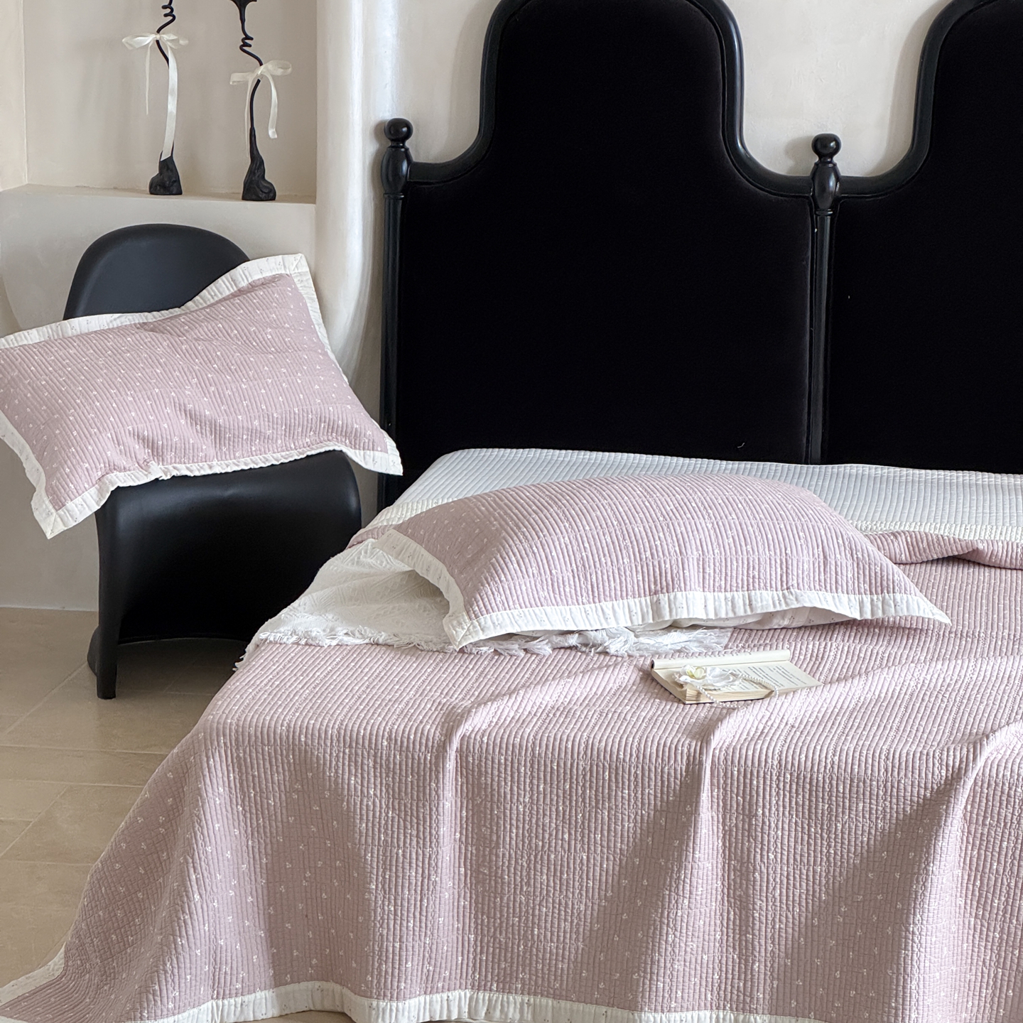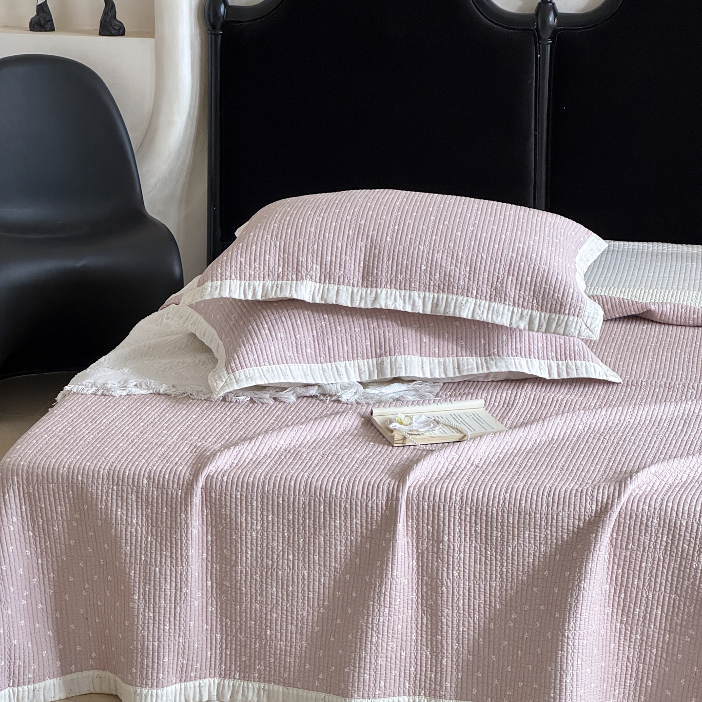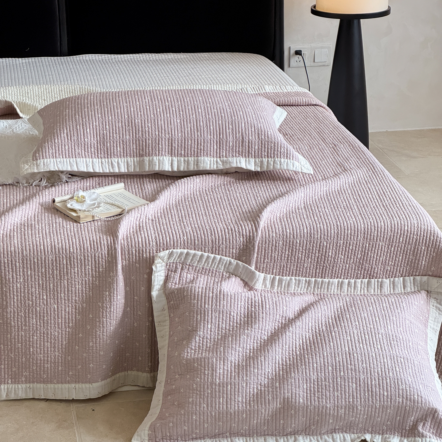 床盖工厂店 2026春夏新款双面100%全棉填充80棉花床盖三件套 樱语粉