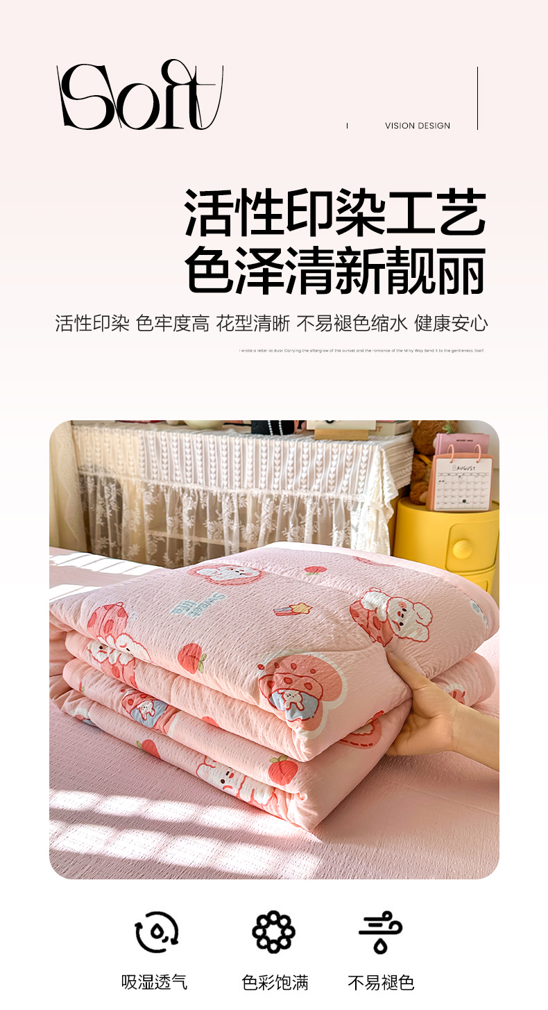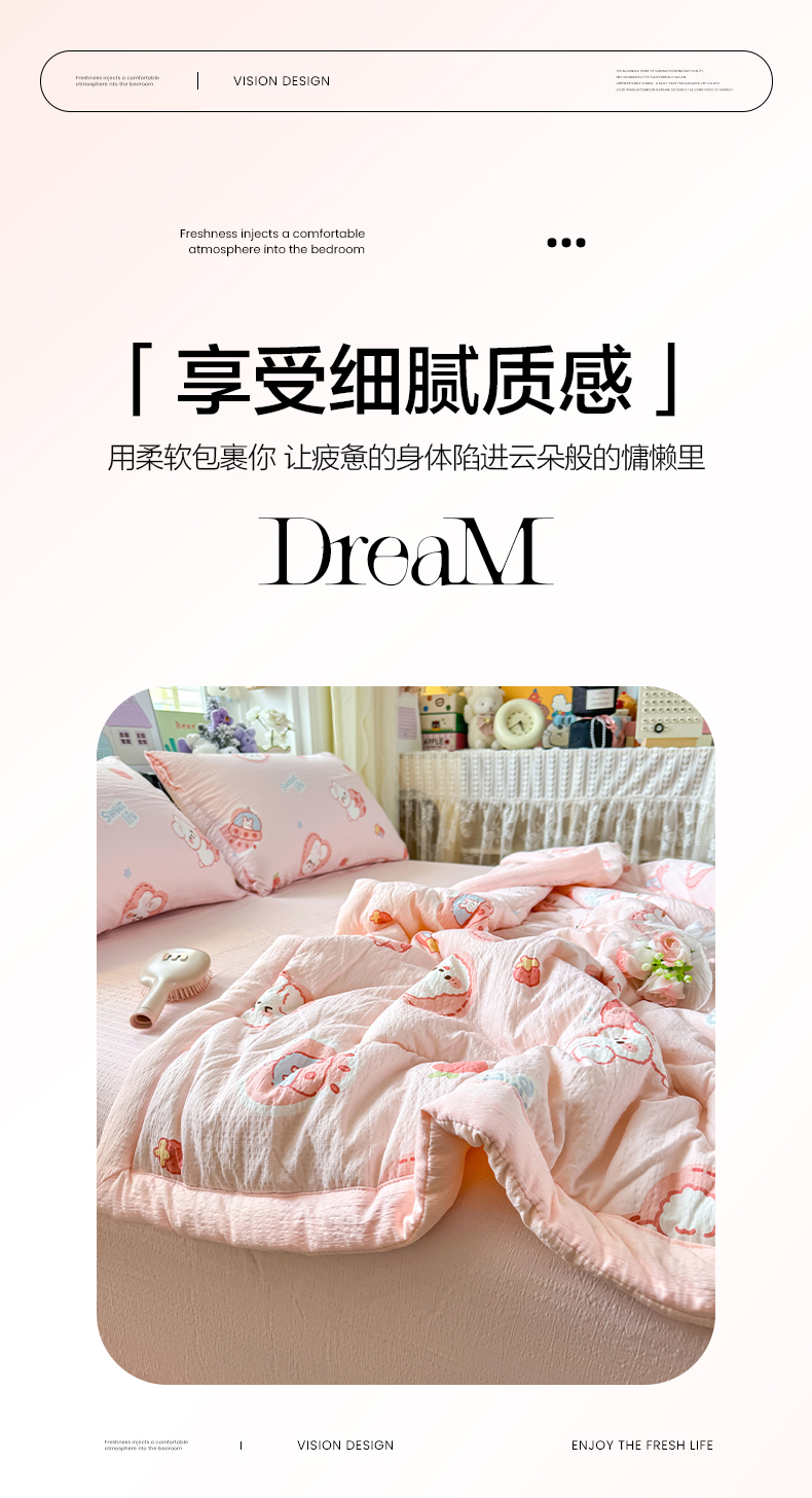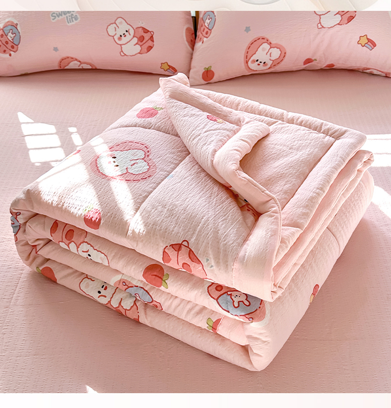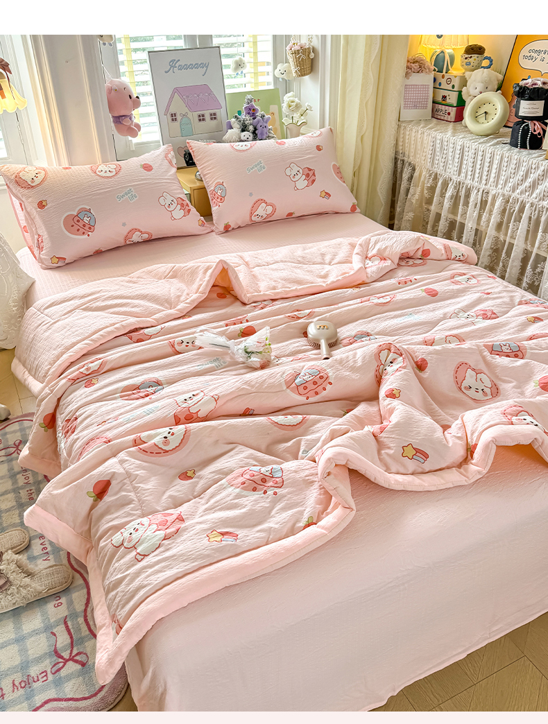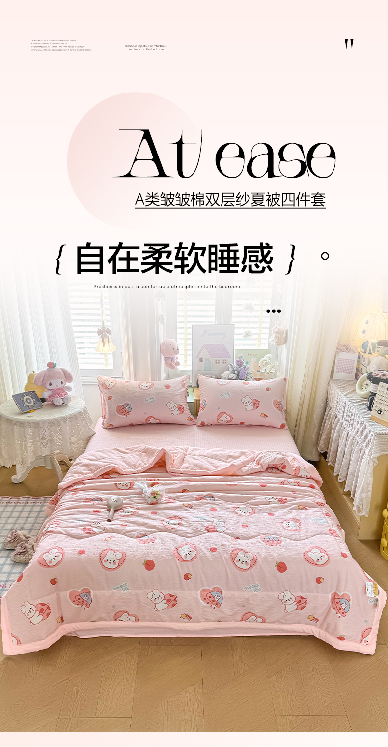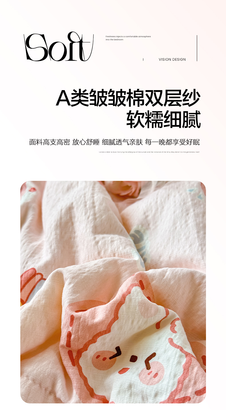 当前位置: 91家纺网 > 商品网购 > 床品套件 > 四件套 > 夏被四件套 > 卡斯诺家纺馆 2026新款皱皱棉双层纱夏被四件套下载文件包含买家秀 蜜桃粉兔