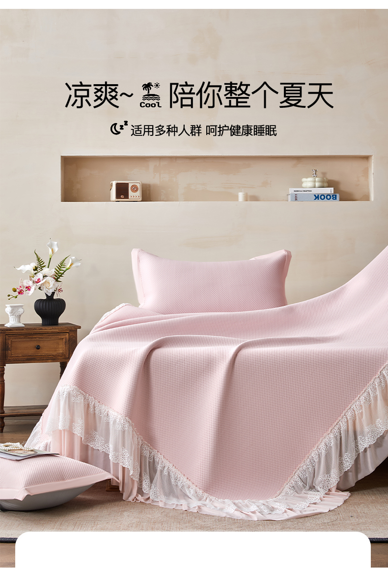 瑞禾家纺 2026新款A类凉感豆豆床裙款凉席三件套-系列四 浅粉星絮
